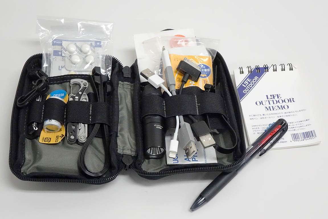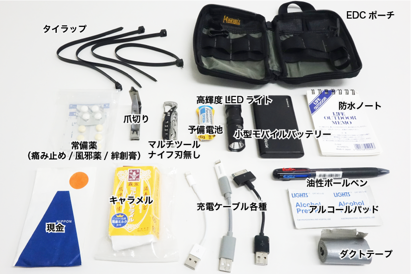 その他に、EDC(Every day carry)ポーチを常に持ち歩いているので、それらがここに加わる。