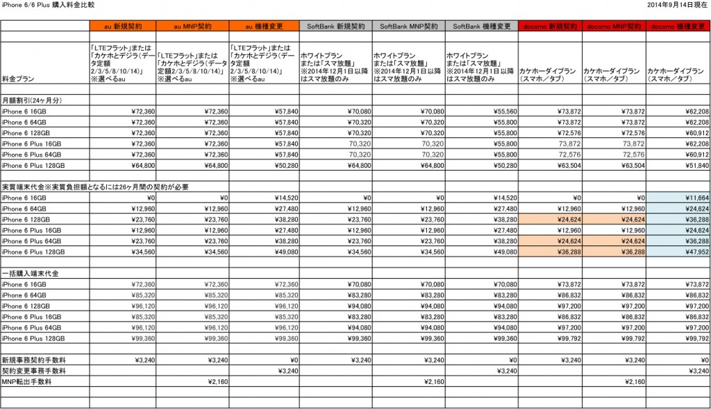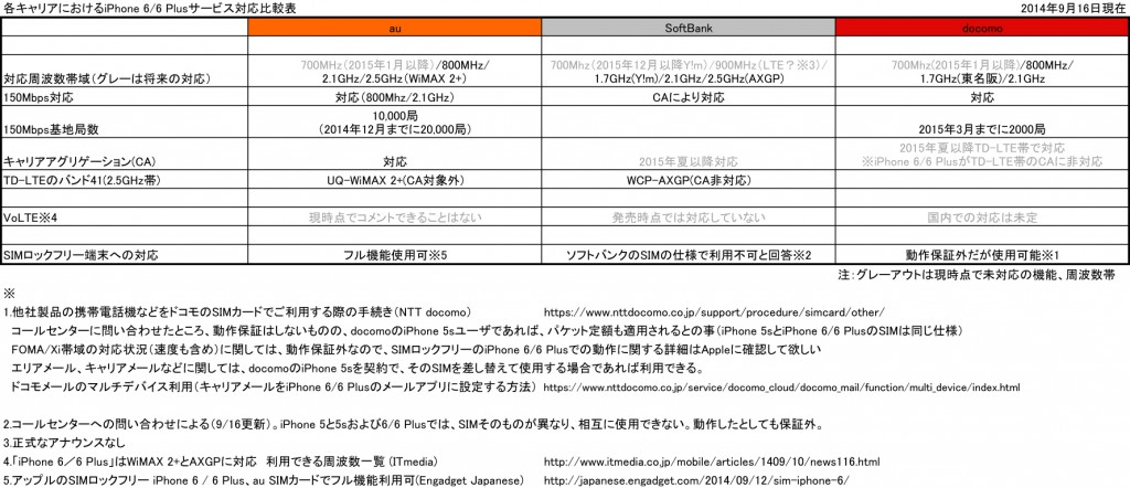 iPhone 6/6 Plus 発売に際しての各キャリアの料金プラン/回線品質比較およびSIMロックフリー端末対応状況