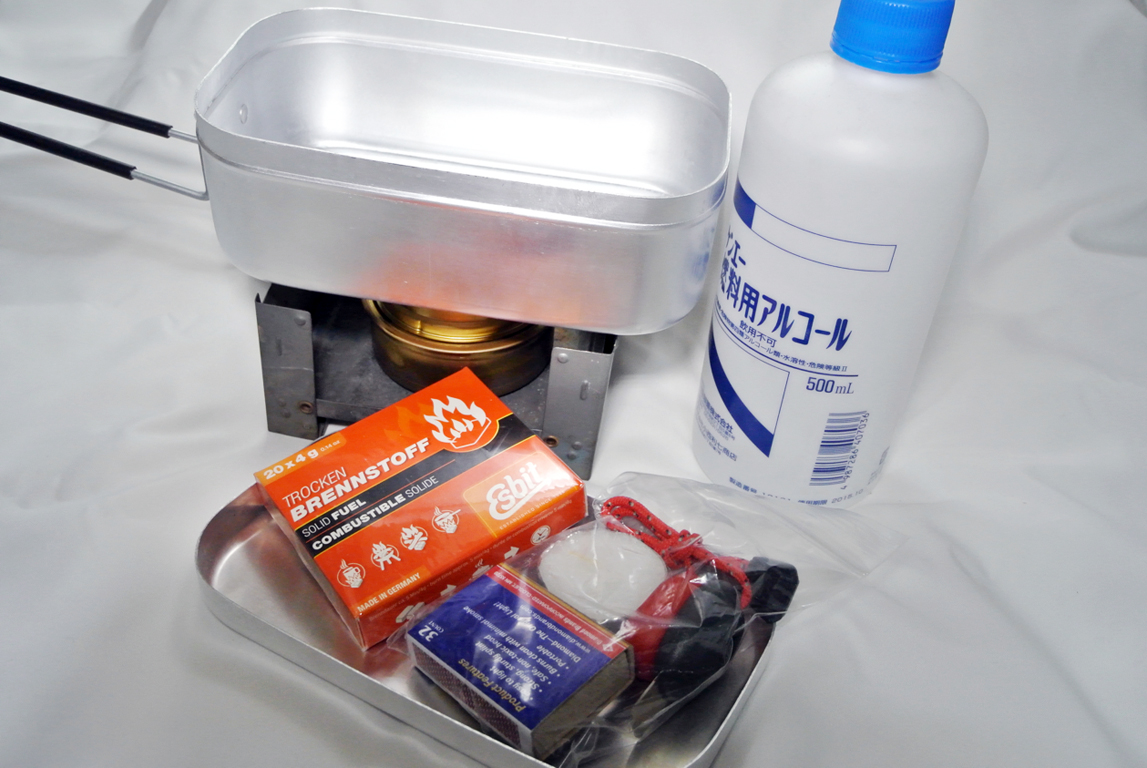 」などを追加する。これは、アルコール燃料が切れた時のバックアップとしてのほか、安定したゴトクとして使用する際にも重宝する。