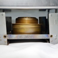 」を使用しないでラージを使用するかというと、鍋類を載せた時のバーナーと鍋底のクリアランスの差にある。ラージを使用しても若干狭いのだが、スタンダードの場合更に狭くなってしまう。火力を有効に引き出すために、ラージを使用使用する。