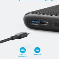 - 選べる入力方法: バッテリー本体充電のために、USB-CとMicro USB入力ポートをどちらも搭載し、お使いのケーブルに合わせてお選びいただけます(※2つの入力ポートを同時に使用しないでください)。