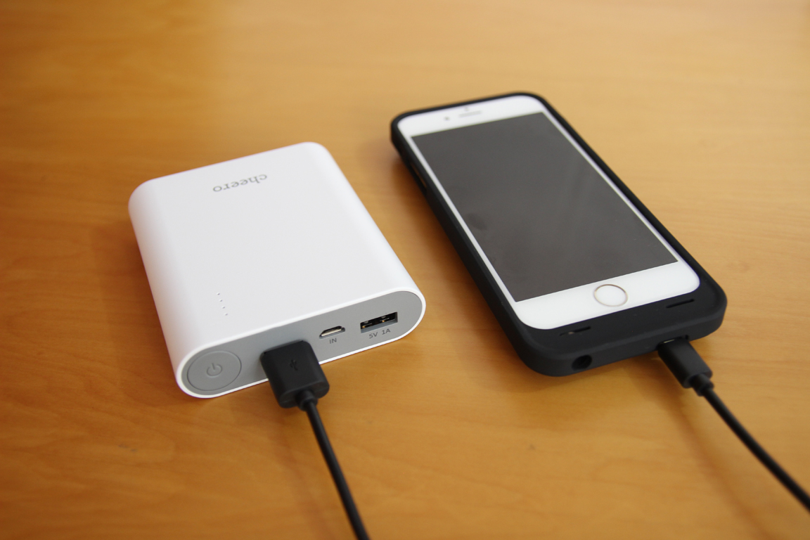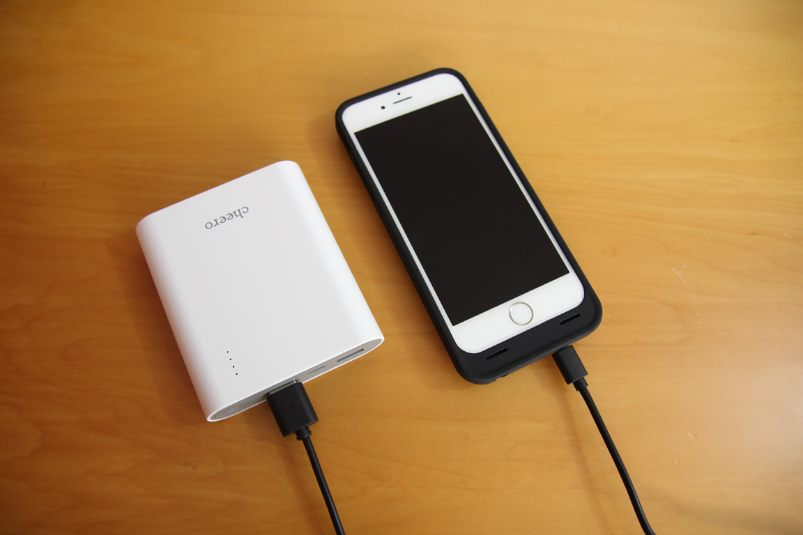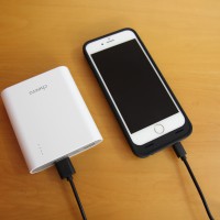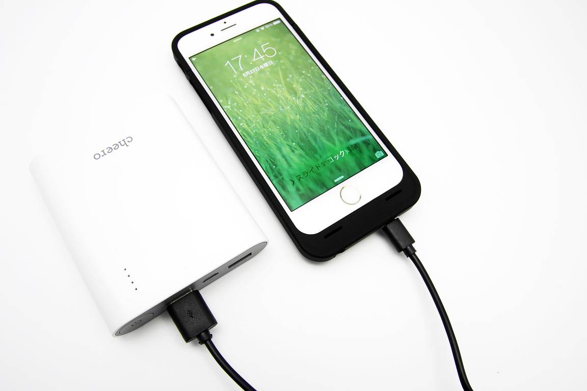 iPhone6の電池が減ってきたなと思ったら、電源ボタンを押すだけで即充電開始。モバイルバッテリーにケーブルを繋ぐ手間も不要です。
