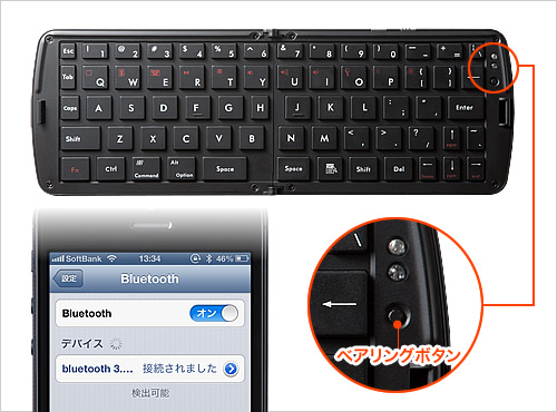 使いたい時にさっと広げ、使わない時はスマートに折りたためるBluetooth キーボードです。