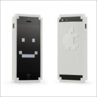8ビットドット絵デザインのiPhone 5用プロテクトバンパーです。昔懐かしい8ビットPC、家庭用ゲーム機から飛び出してきたようなユニークなドット絵デザインが特徴です。ケース背面にはドット絵風の林檎マークが付いています。