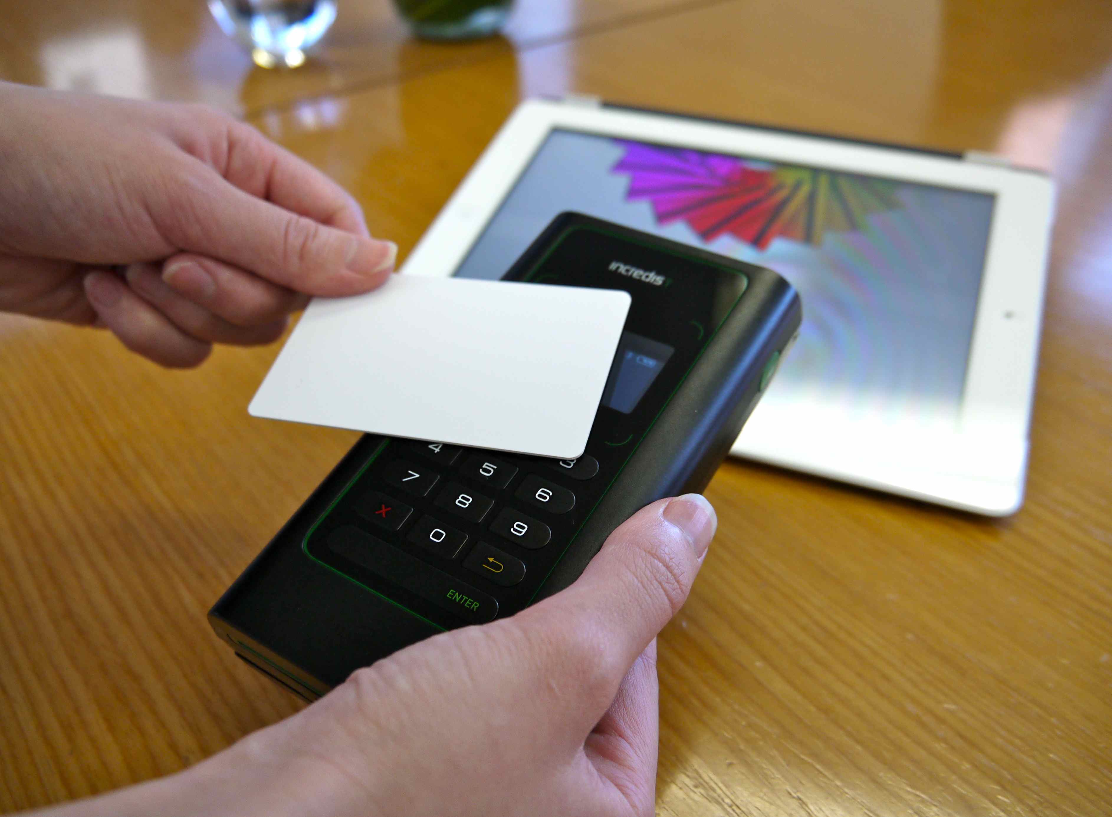 新製品マルチ決済装置「Incredist(インクレディスト)」は、iPad等のスマートデバイスに決済専用アプリケーション「ペイメント・マイスター」を入れることで、接客した「その場」で複数の決済を実現することが可能になります。大きなイベント会場やスポーツ競技場の売店など、これまで現金決済が中心だった場所でも、Incredistとスマートデバイスさえあればクレジットカードと電子マネーでの決済が可能となり、お客様のニーズにあわせた支払方法に対応できます。またクレジットカードの普及率が低い地域も含む様々な地域を訪問する生損保外交員や訪問修理業においては、iPhoneやiPadを携帯電話やパソコン代わりに利用し、更にクレジットからJ-Debitまで多種多様な決済が可能になります。