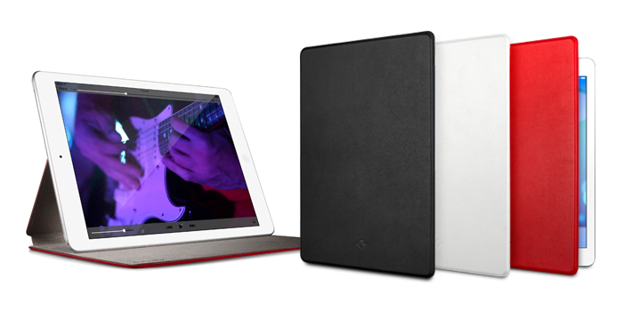 本製品は上質で手に馴染む柔らかいナッパレザーを使った高級感のあるデザインで、iPad Airの保護はもちろん、ファッションの一部としてiPad Airを着こなすことができます。カラーは、ジェットブラック、モダンホワイト、レッドポップの3色を用意しており、どの色もiPad Airのカラーリングにマッチします。