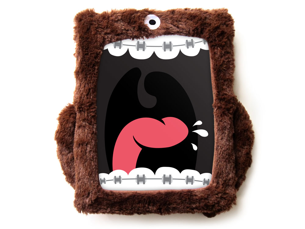 iPadを可愛らしくする着ぐるみカバーです。装着することでフロントカメラのオープン部分が目となりiPadを名前の通り「サイクロプス=一つ目怪獣)」に変身させます。体毛はマイクロファイバー製で、もふもふの感触はモンスター感満載。専用の壁紙を設定することでiPadの画面を口の中に見立てることも可能です。