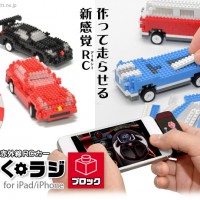 「つくラジ!ブロック USB 赤外線 RCカー」は、自分自身でブロックを組み立て車を作りそれを自由に走らせる事が出来る、新感覚のiPad&iPhone用 RCカーです。