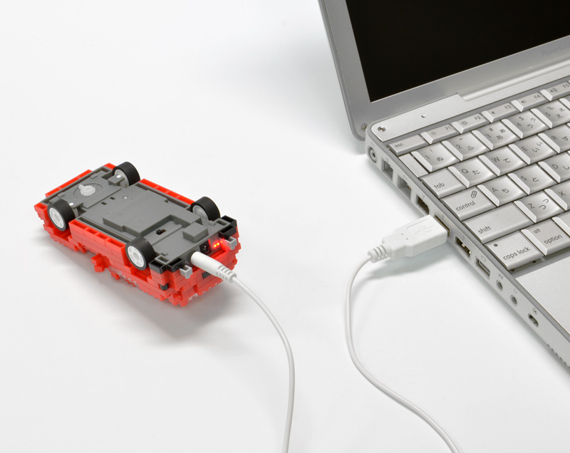 「つくラジ!ブロック USB 赤外線 RCカー」は、RC本体と送信機の内蔵のバッテリーをパソコン等のUSB端子から充電する事が出来ます。