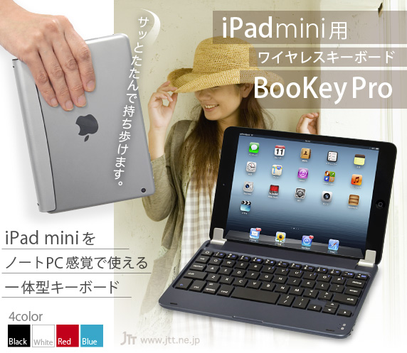 「iPad mini 用 ワイヤレス キーボード BooKey Pro(ブッキー プロ)」は「iPad mini」の為に作られた、専用の一体型のワイアレスキーボードです。