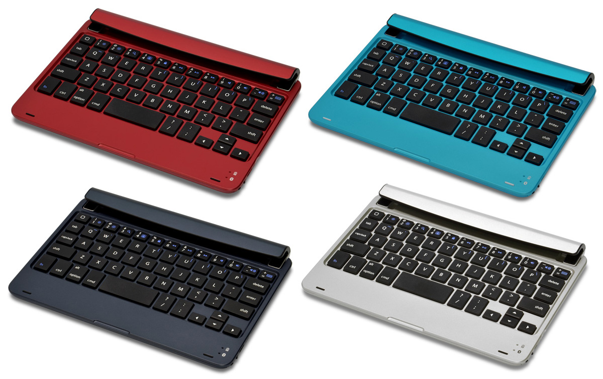 「iPad mini 用 ワイヤレス キーボード BooKey Pro」のカラーは、「iPad mini」の基本カラー「ブラック/ スレート」&「ホワイト/シルバー」の2色に、情熱的な「レッド」カラーと爽やかな「ブルー」カラーを加えた、全4 色から選ぶ事が出来ます。