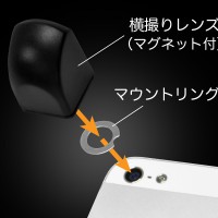「iPad&iPhone用 横撮りレンズ with マグネット」は、レンズの固定方式に着脱が簡単にできる「マグネット式マウント」を採用。iPad&iPhoneカメラレンズ部に「マウントリング」を貼り付けておくことで、レンズ底部のマグネットの磁力により、レンズを簡単に固定する事が可能になります。