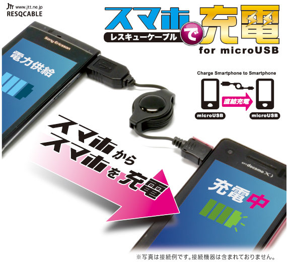 日本トラストテクノロジー、スマホからスマホの充電ができる 「スマホで充電 レスキューケーブル for microUSB」を発売