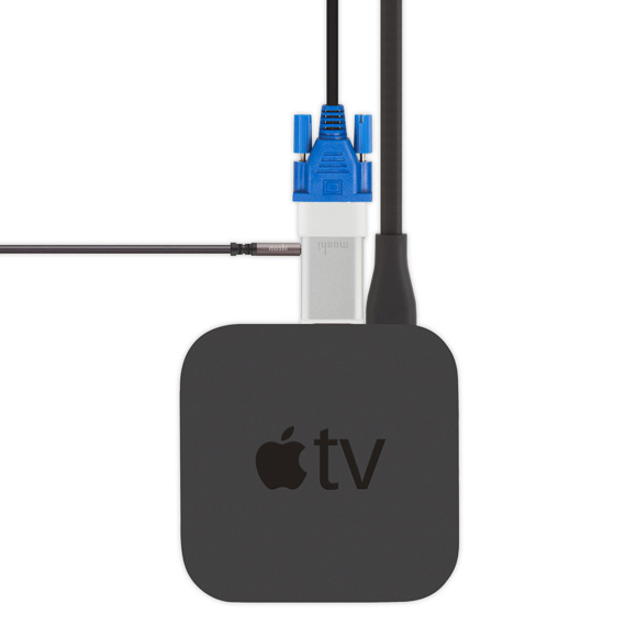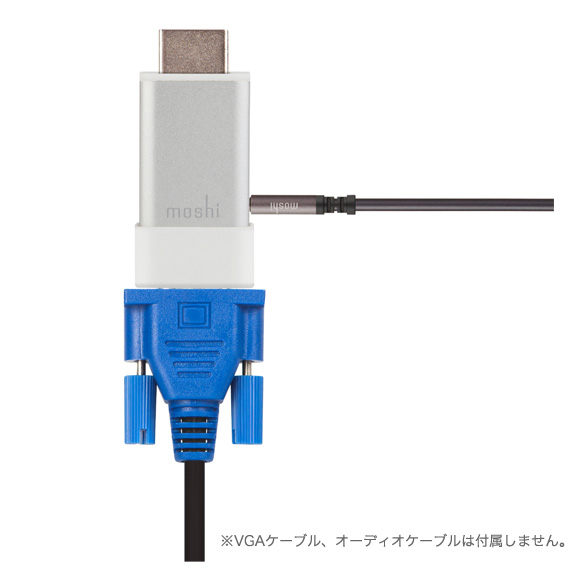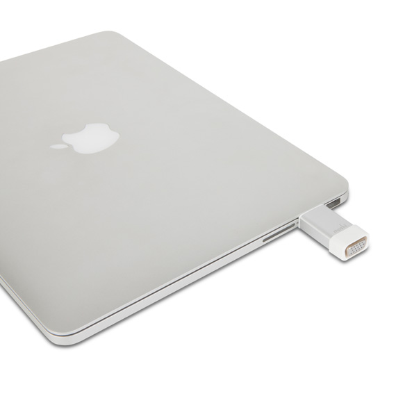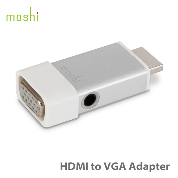 Moshi の超コンパクト HDMI – VGA アダプター (音声付) を使用すると、お使いの HDMI出力対応のMacBookやApple TV をVGAプロジェクターやVGAモニターに接続することができます。
