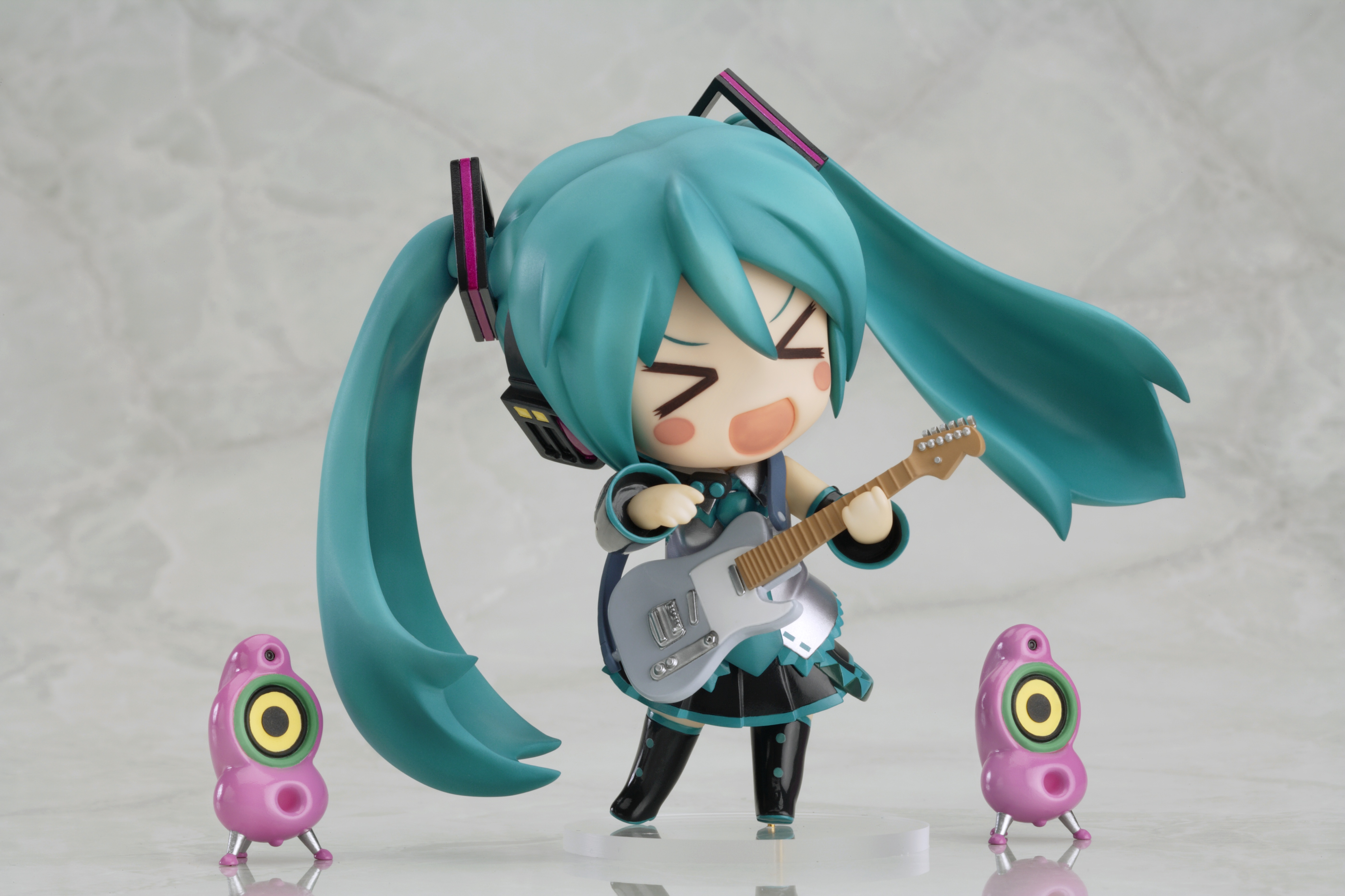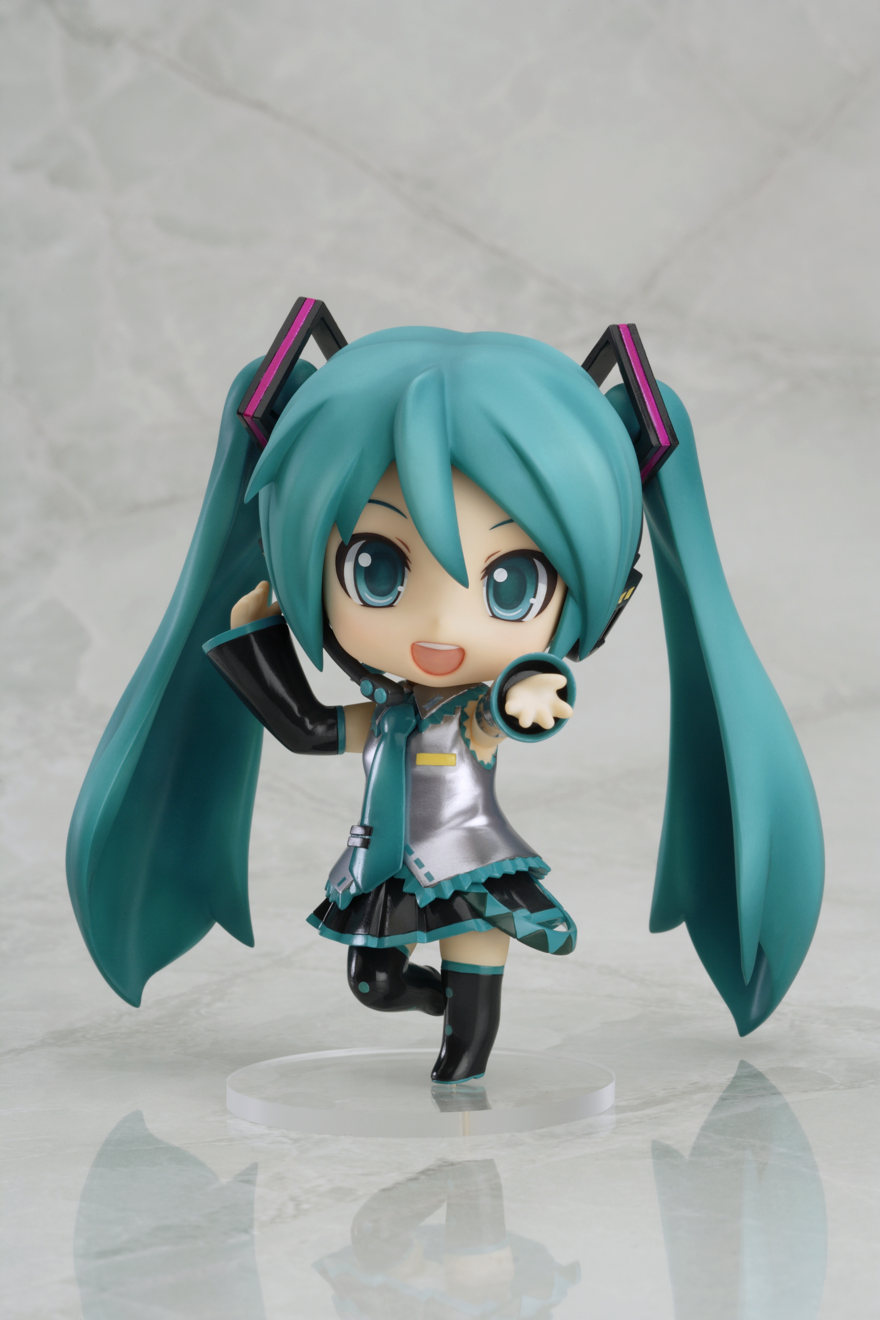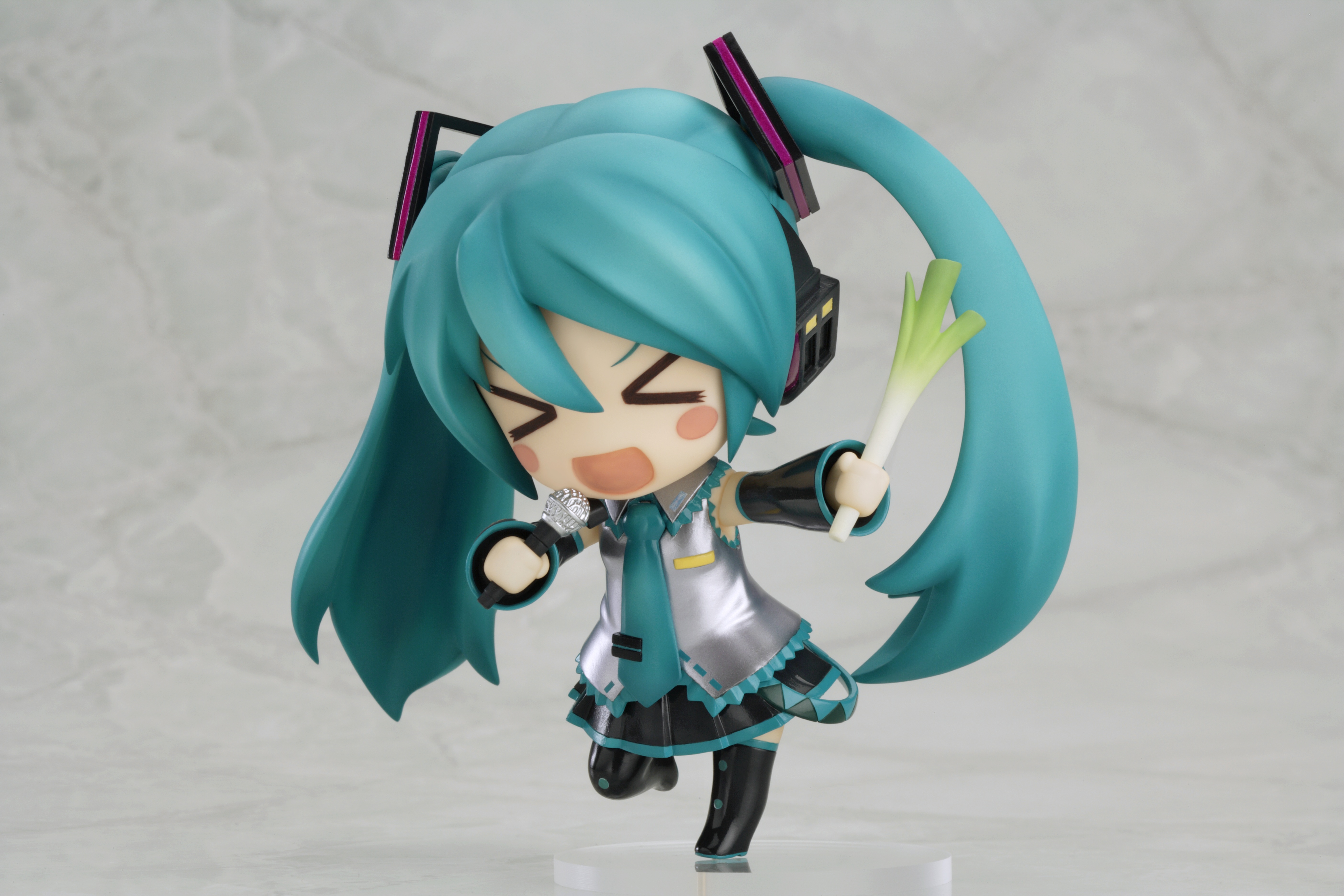 『キャラクター・ボーカル・シリーズ01 初音ミク』より、皆様に愛され続ける「ねんどろいど 初音ミク」が装いも新たに登場です。『初音ミク and Future Stars Project mirai』とタイアップしOPのPVに登場するキーボードやギター等、豊富なパーツを取り揃えました。「ウインク顔」や「興奮顔」でこれまでとは一味違った新たな「ねんどろいど 初音ミク」をお楽しみいただけます。手足とツインテパーツをつけかえてお座りする姿も再現可能です。もちろんおなじみのネギもついてきます♪
