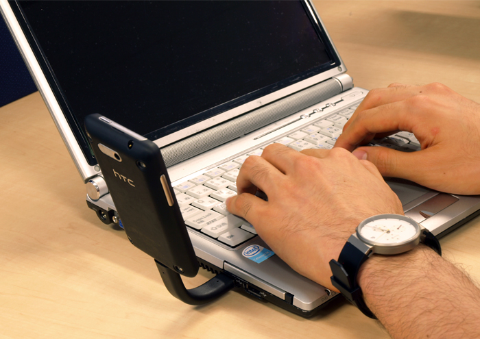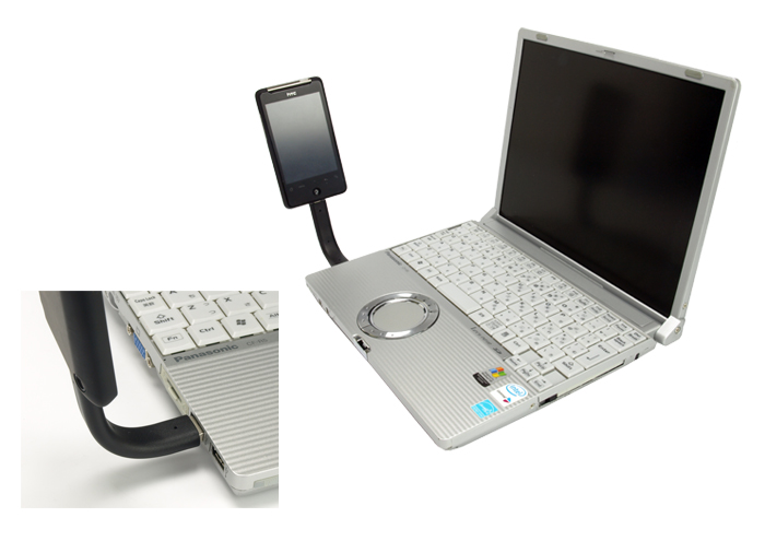 出張先のホテルで壁のコンセントにさしたまま直立させたり、PCのUSBにさしてスマートフォン画面を見やすく、など用途は色々。