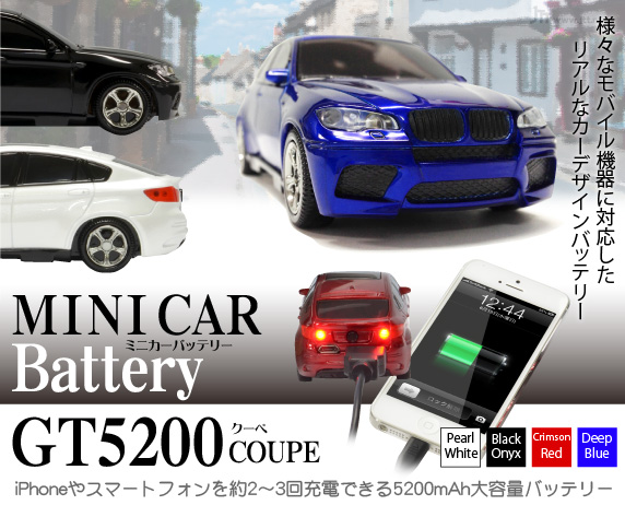 日本トラストテクノロジー、自動車の形をした大容量USBバッテリー「ミニカーバッテリー GT5200クーペ