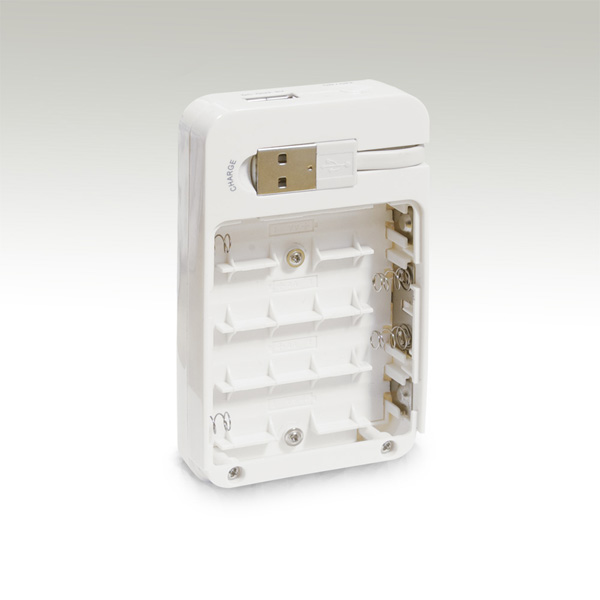単3形電池×4本で、最大 USB 5V、1000mAの出力が可能で、iPhoneやiPad、携帯電話、ゲーム機、スマートフォンなどの充電にご利用いただけます。