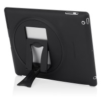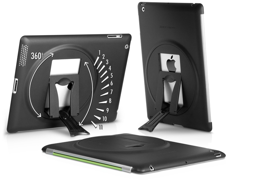 「Vario-SC For iPad」は、360度回転、11段階の角度調整に対応したスタンドを搭載し、横向き、縦向きにも自在に 対応。各ボタンや端子へアクセスしやすい設計です。表面素材には、グリップ感のあるラバー加工を施し、持ちやすく、 スタンド部分を握ることで、立ったままでの操作も可能です。