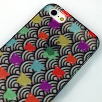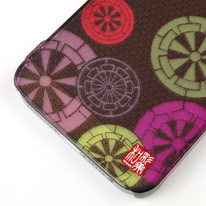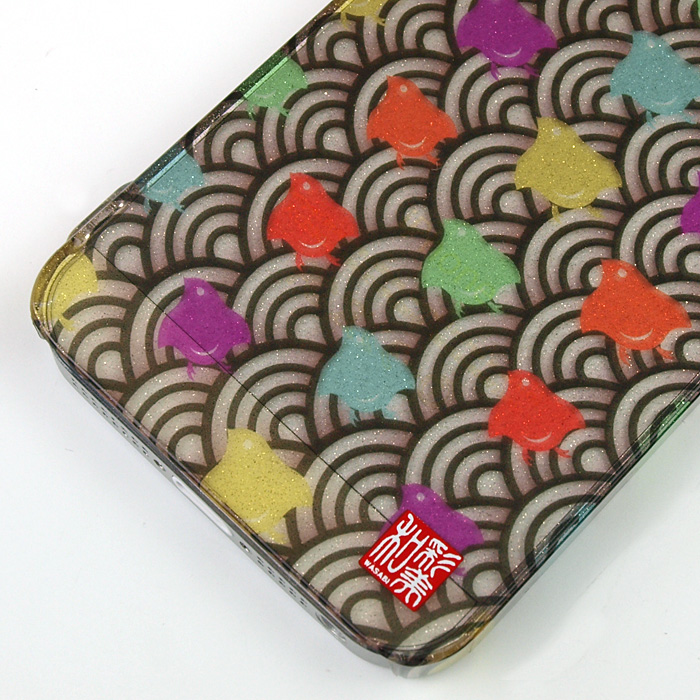 ・クリアケースにクリアコーティング⇒柄を転写:コーティングに柄がしみ込む⇒乾燥:柄定着⇒和彩美印を上からプリント⇒乾燥:印定着⇒パッキン グ:全6工程もの過程を1個1個丁寧に日本で。