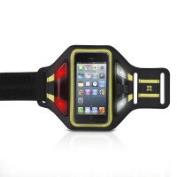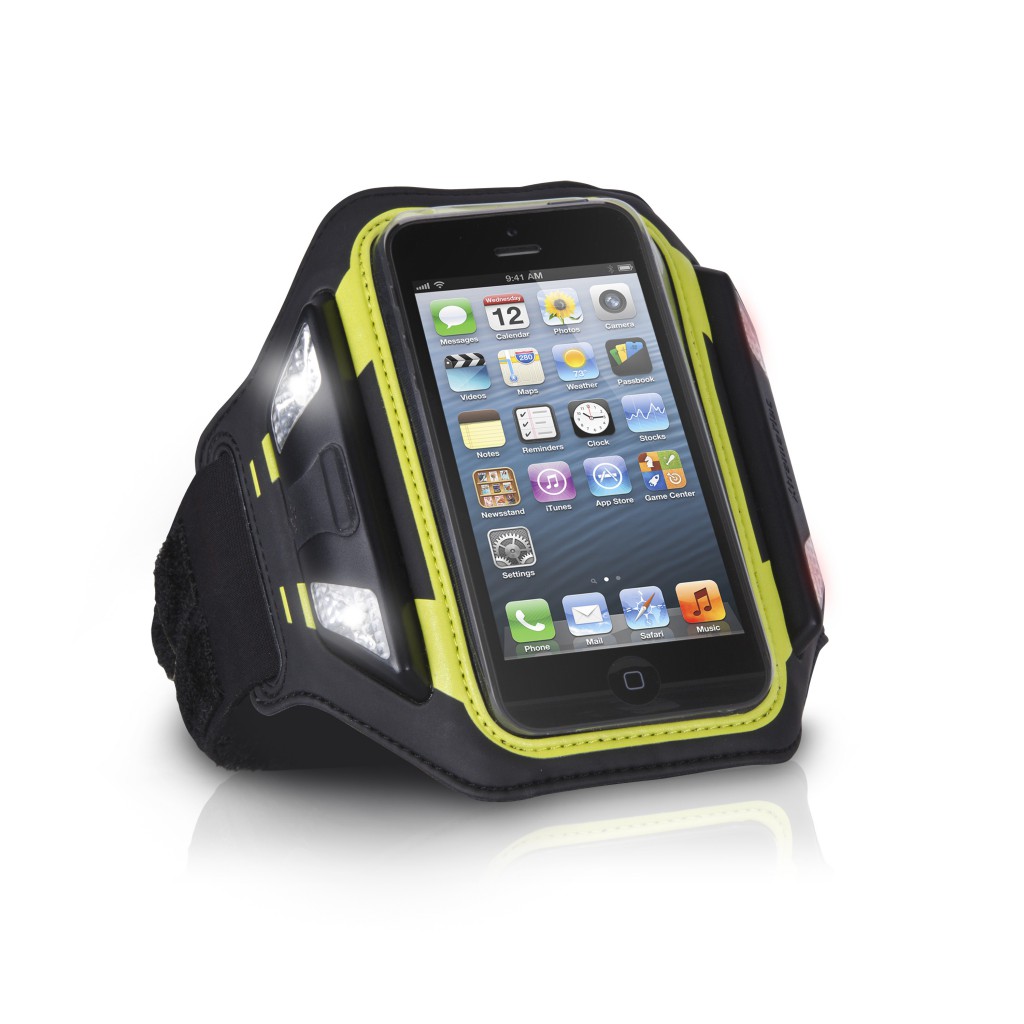 夜間のランニングやサイクリング時の安全対策用に開発された革新的なアクティブユーザー向けLEDライト付スポーツアームバンド。iPhone 5/iPod touch(第5世代)に対応。