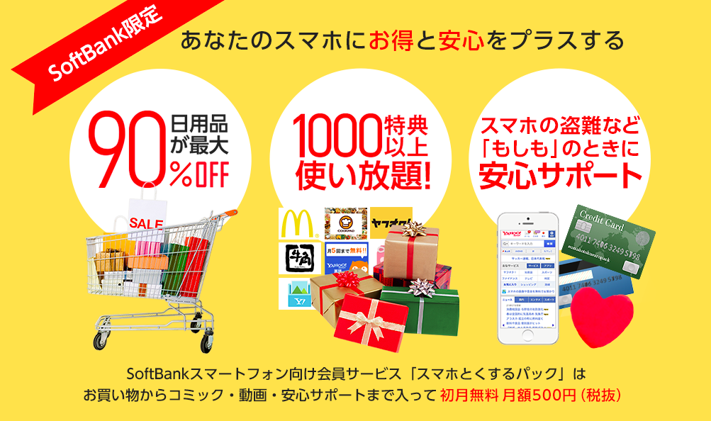Yahoo! JAPANとソフトバンクモバイル、スマートフォンユーザーにうれしい特典が満載の有料会員サービス「スマホとくするパック」の提供を開始