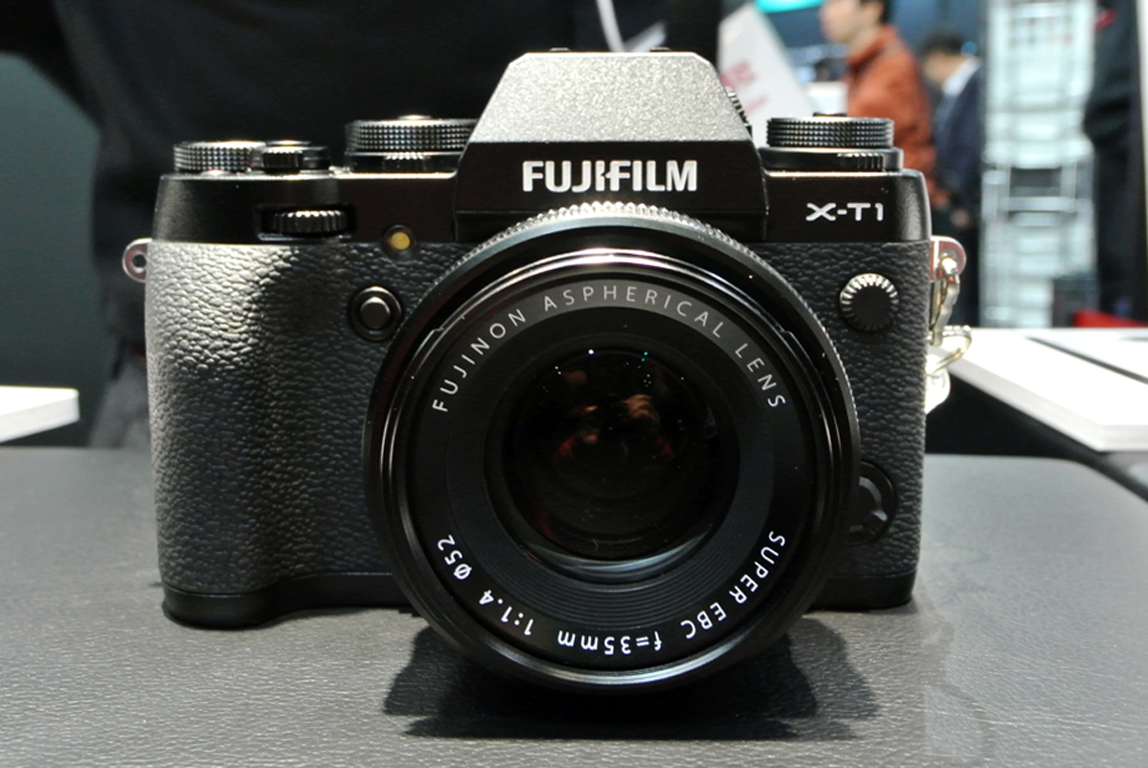 富士フィルムブースでは、同社初となるAPS-Cサイズセンサー搭載ミラーレス一眼カメラ「FUJIFILM X-T1