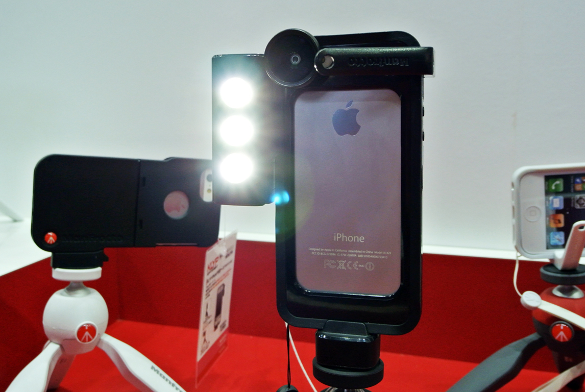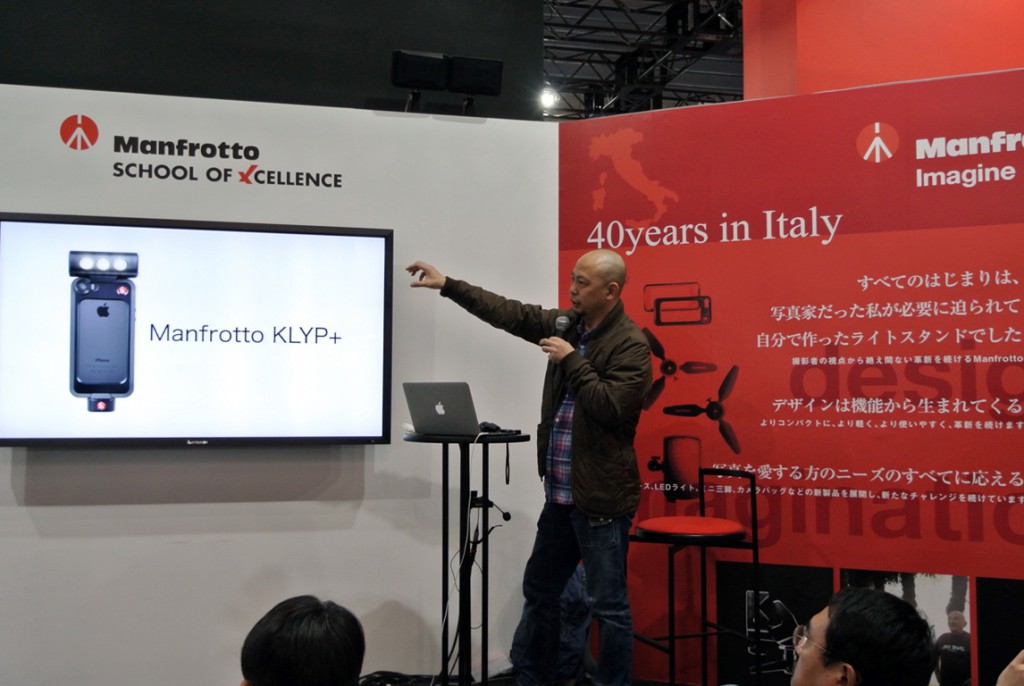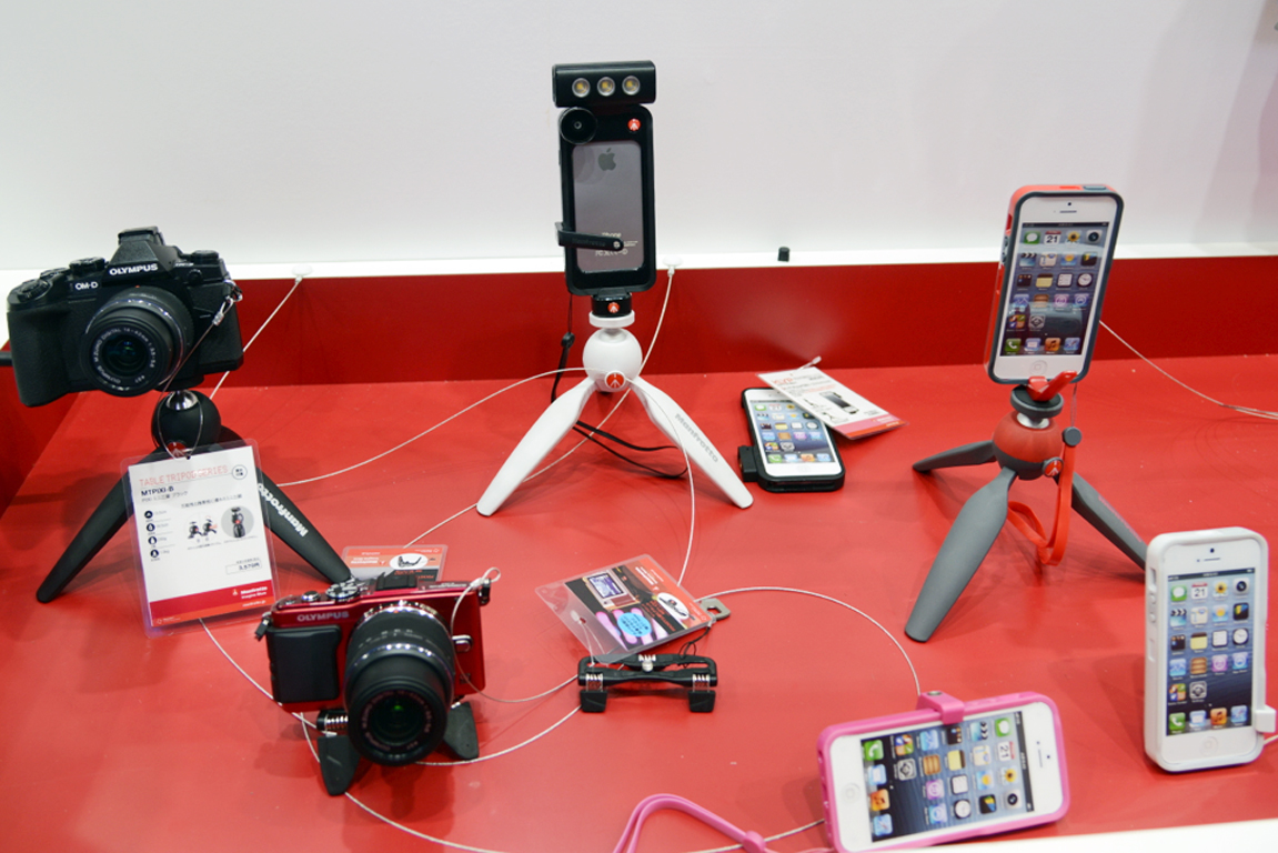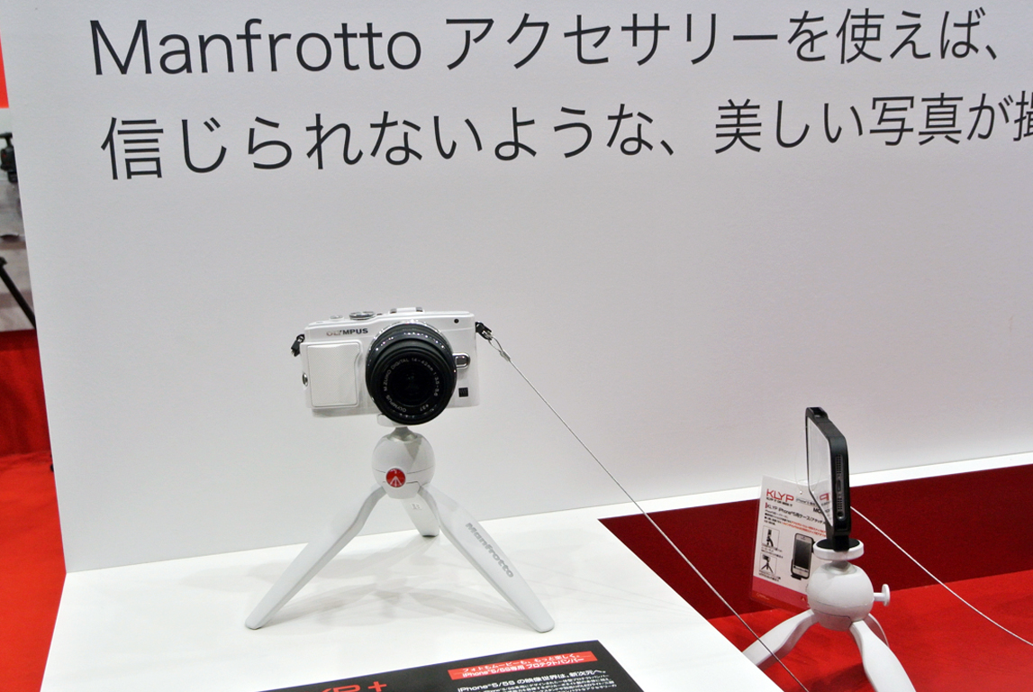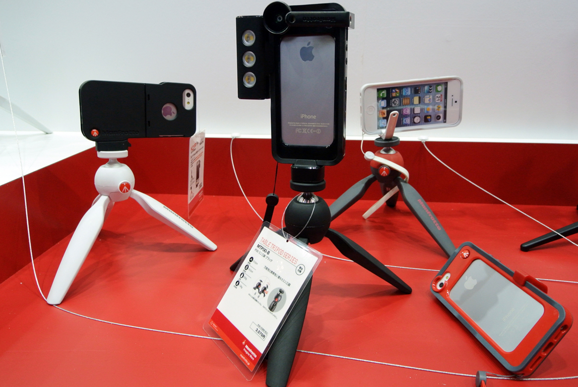 マンフロットブースでは、iPhone用の新しい撮影アクセサリーケースシステム「KLYP+」などが展示されていた。