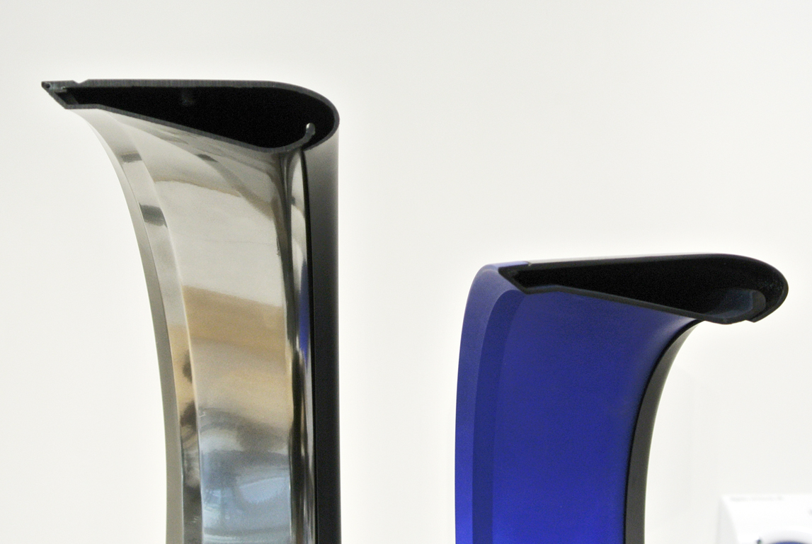 従来機(右)と比べ空力設計を変更した新型(左)のカットモデル