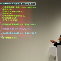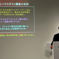 エフジーシー総合研究の川上祐司氏によるハウスダストの正体とアレルギーに関するセミナーおよびハウスダストの採取方法(どのような場所にダスト/ダニなどが入り込んでいるか)のレクチャー