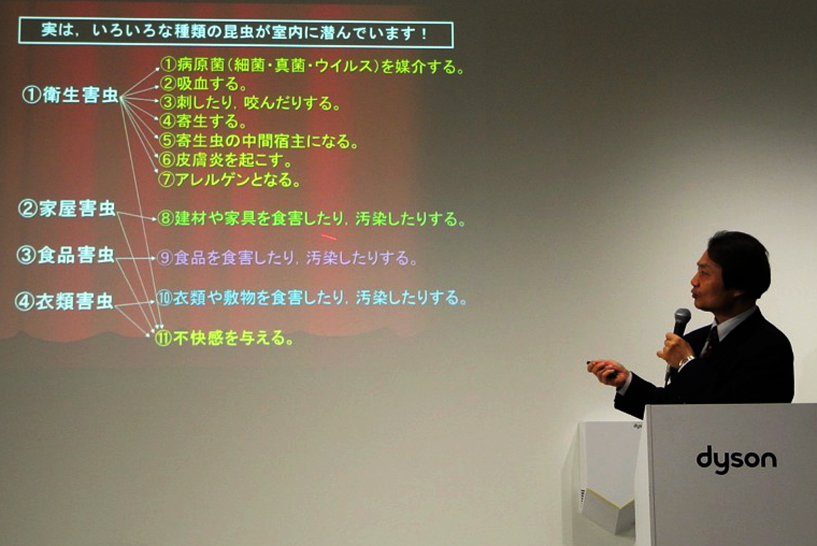 アレルギーの原因となるハウスダストには、食べ物のかけら、フケや角質などの老廃物、それらに発生したカビやそれを目当てに寄って来たダニなどの微生物およびそれらの死骸などが含まれるという。それらが人の皮膚や粘膜に付着したり、吸い込んだり口に入る事でアレルギー反応を起す事があるという。ハウスダストを摂取しないようにするには、こまめな掃除が欠かせないが、どんな掃除機を使用するのが良いのか、ダイソンのショールームにて開催されたセミナーを取材した。