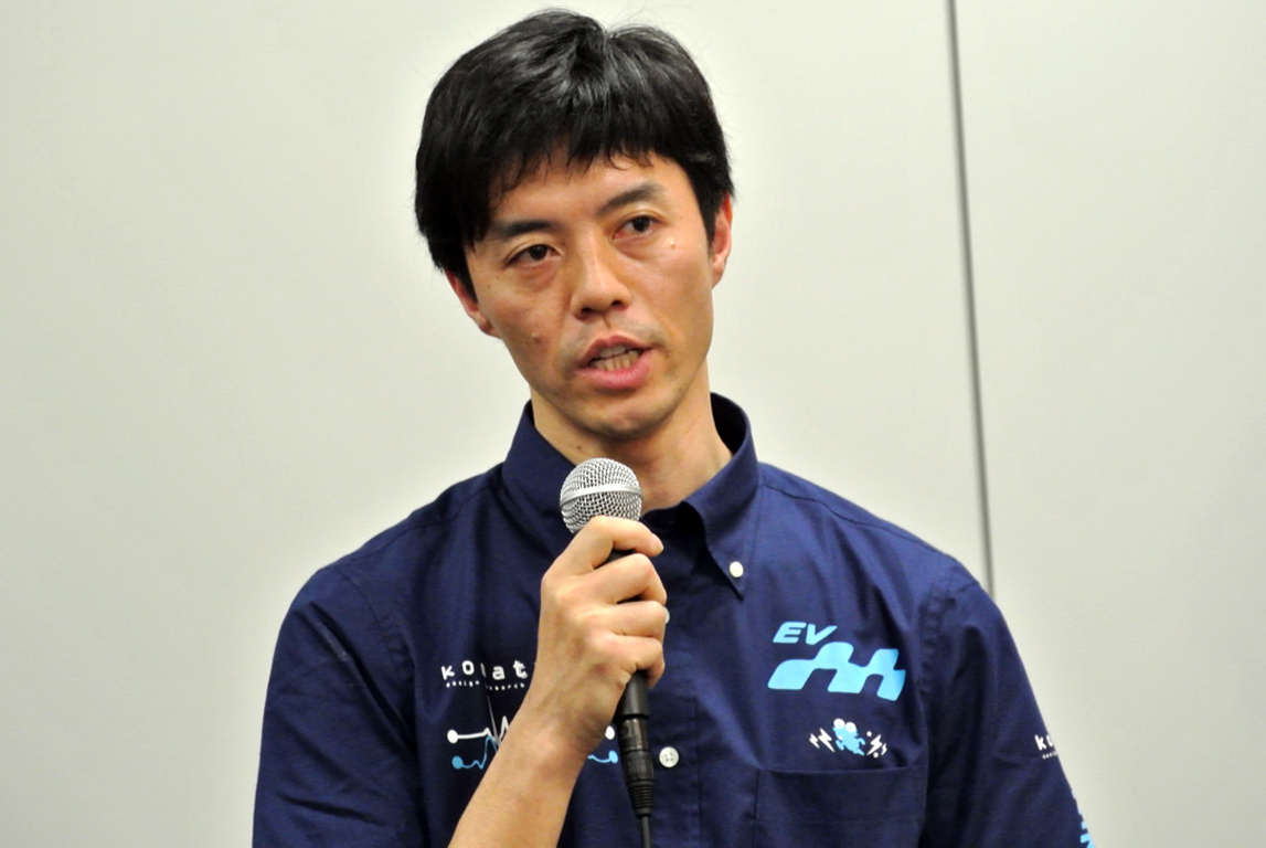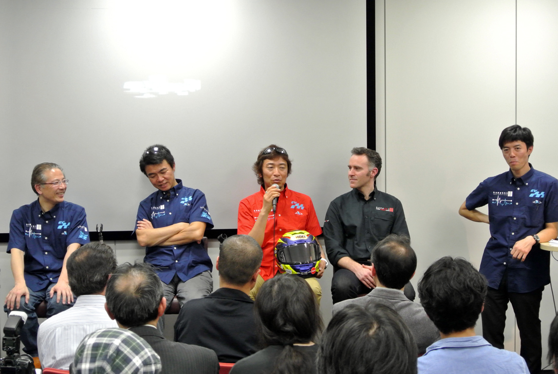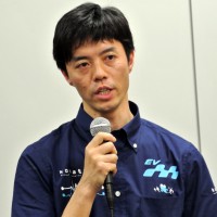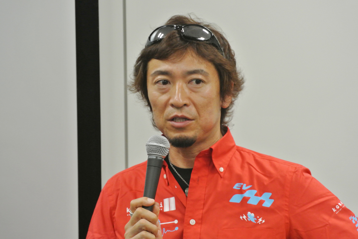 チーム代表の岸本吉広氏は、今年3年目のチャレンジにあたり、昨年の反省を活かしたマシン作りをしてきた。電動バイクというと、ようやくスクーター型が街で見かけるようになってきたが、大きなレーサータイプの電動バイクを走らせたいという思いでやって来た。新しい事にチャレンジしつづけて来たが、今年のチャレンジとして、レーシングチームとしての実績もあるグッドスマイルレーシングとコラボして、初音ミクデザインの電動バイクで参戦することになったと、今回の経緯を説明。