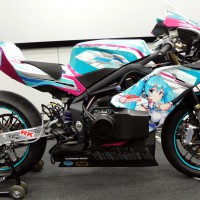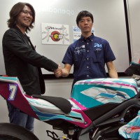 ライダーの松下ヨシナリ選手は、2009年のレースで、イギリスのネットアイドル(ベッキー・クルーエルさん)にパラソルガールをやってもらった際に、ネット、アニメの世界の反響がすごかったエピソードも紹介し、今回のミク仕様のバイクにも満足げの様子。日本人として表彰台に日の丸を掲げたい、と今回のレースに意欲を見せた。