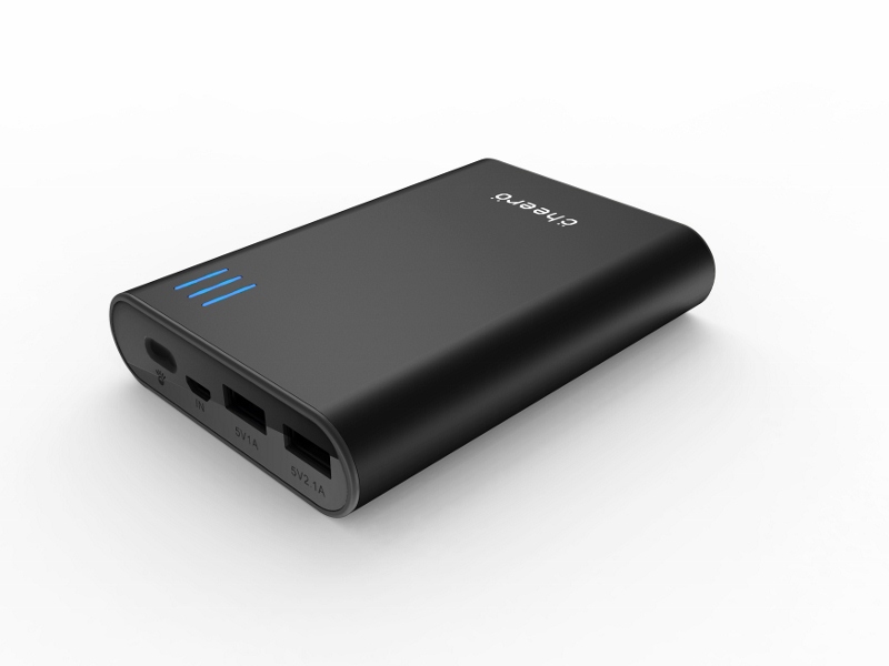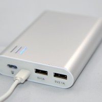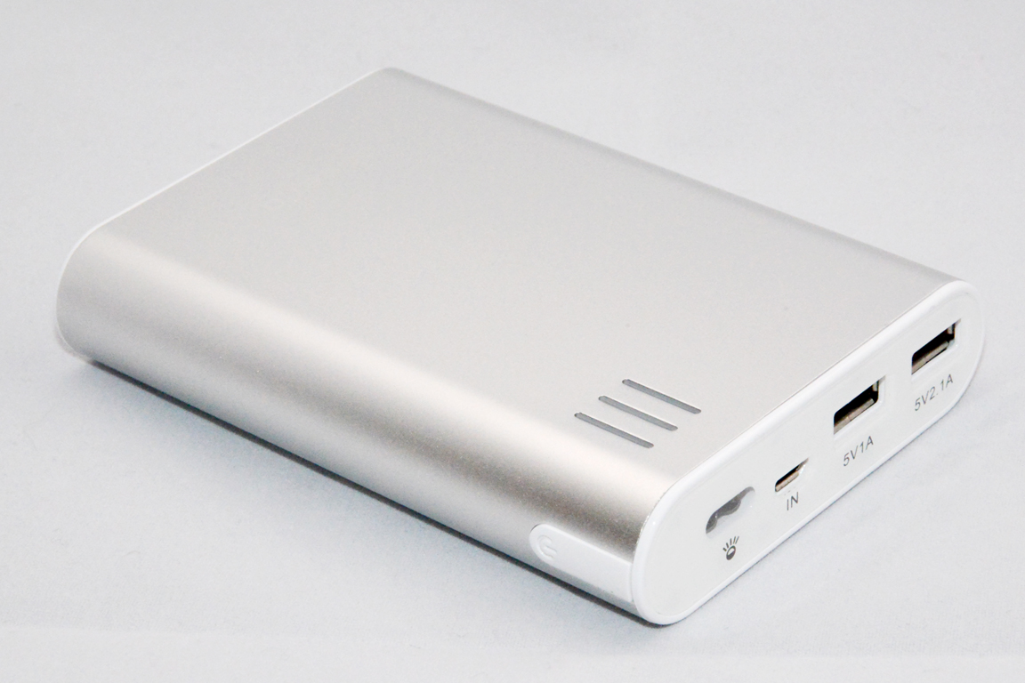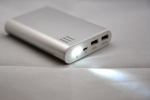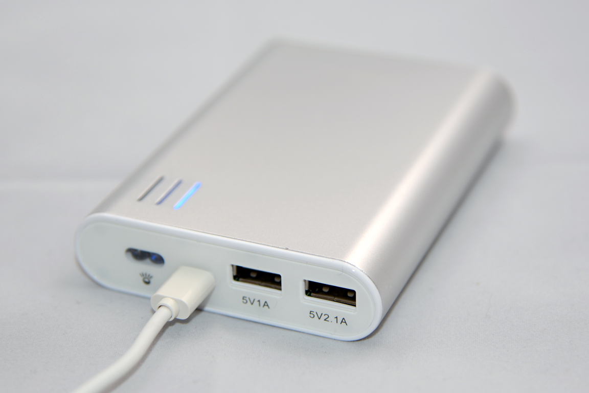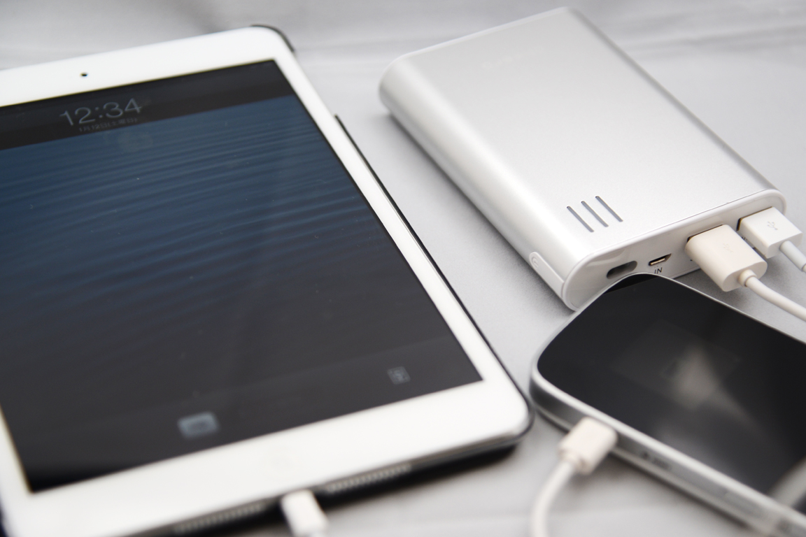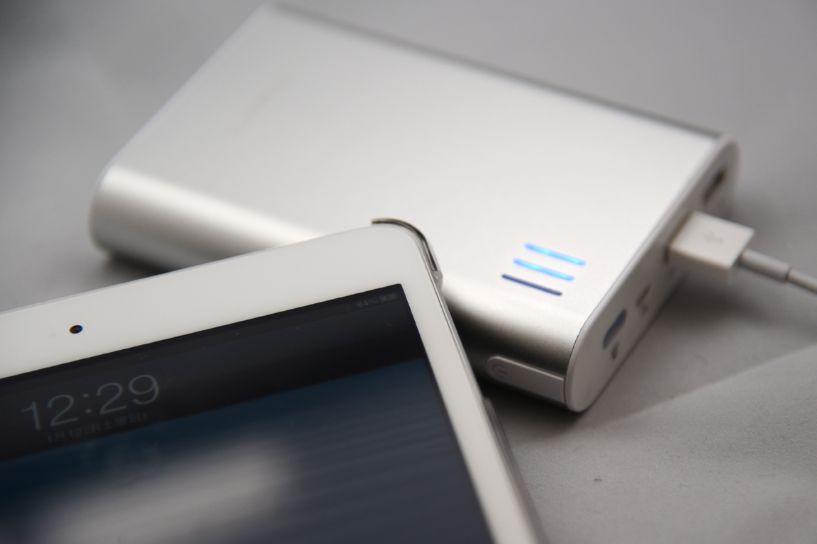LEDライトや充電(給電)ポート類は、一面にまとめられており、micro-USBポートにて充電(蓄電)、フルサイズのUSBポートにてそれぞれ1A、2.1Aの充電(給電)を行う。2.1Aのポートを使用すると、iPadなど高出力を要するデバイスの充電が効率よく行える。