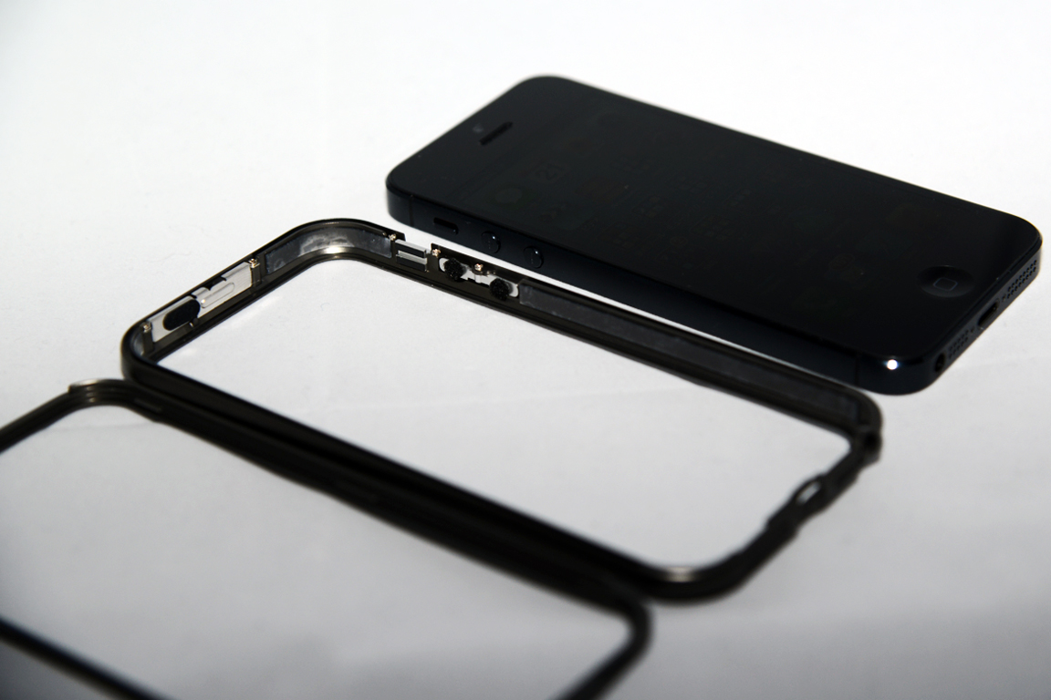アルミバンパー、金属製バンパー、フレーム型ケースに多く見られるネジ式でなく、ワンタッチで簡単に着脱できる機構が採用されている。イージーな着脱ができるが、装着感はしっかりしており、所持した状態から落下させてしまっても、不意に外れるような事は起こらなかった。 また、落としてしまったり強い衝撃が加わった際は、バンパー自体に傷がついたりはするが、iPhoneそのものに傷がついたり破損すると言った事は発生しなかった。