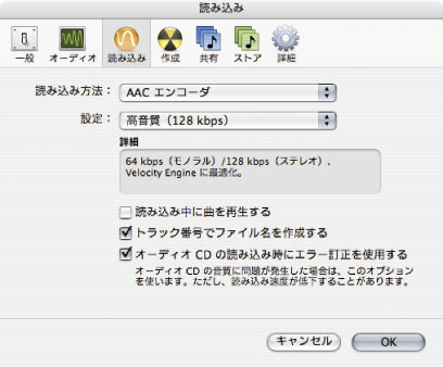 ※読み込み中に曲を再生する、のチェックを外すと、音飛びなどが起こりにくくなります。
