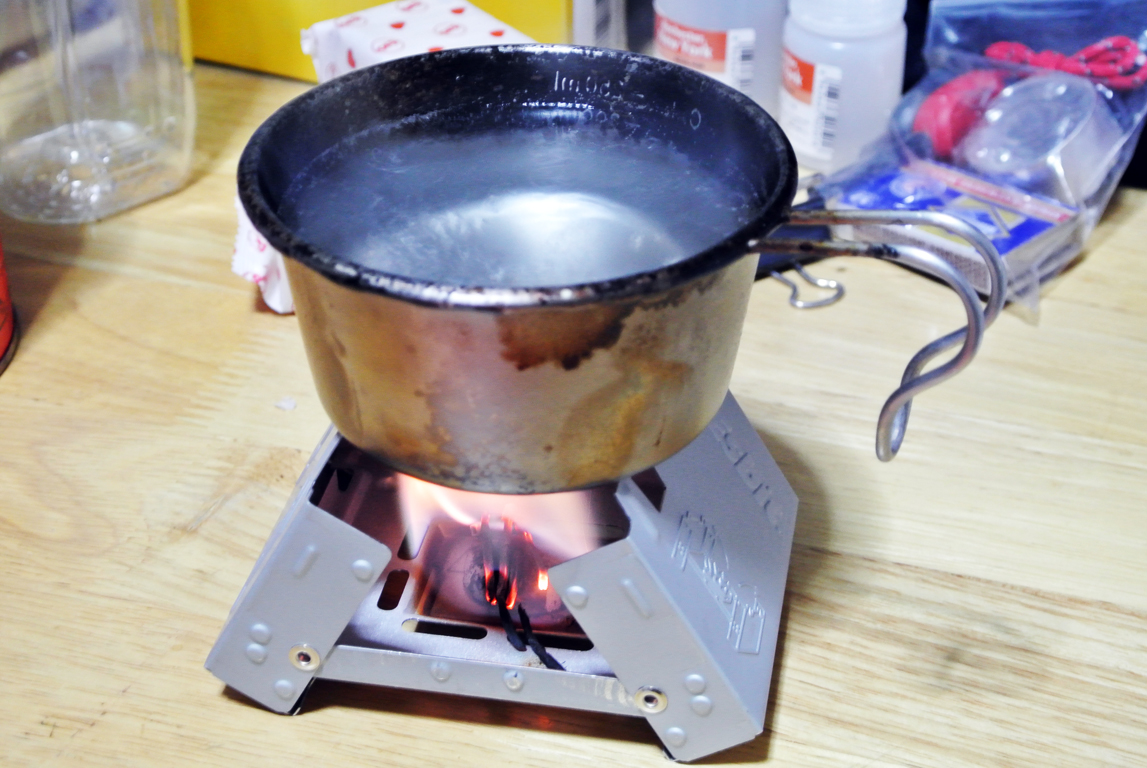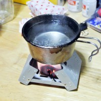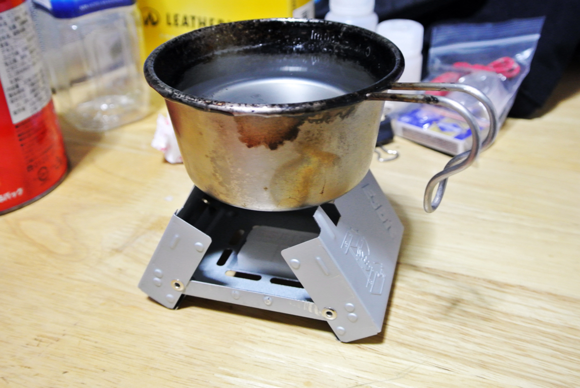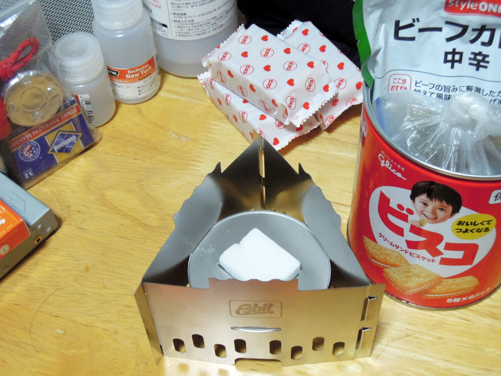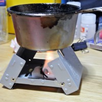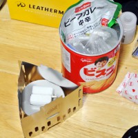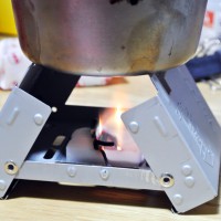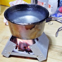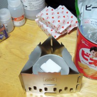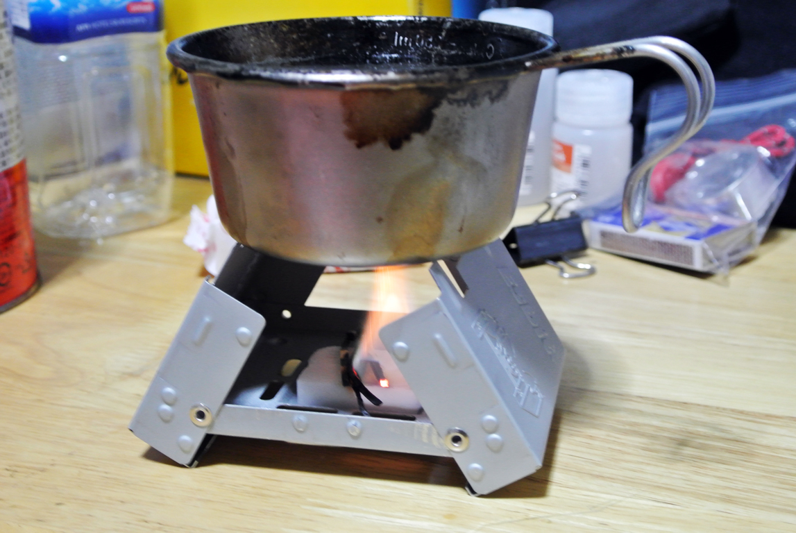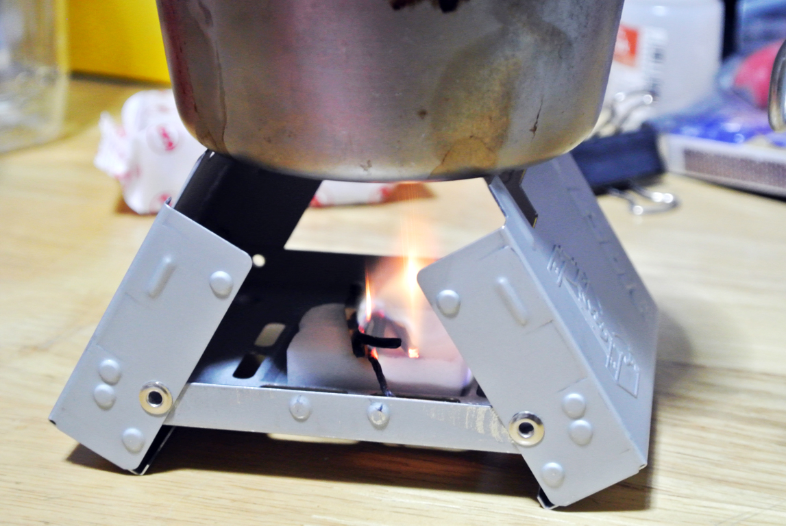 固形燃料は、アルコールバーナーと比較して、燃焼時にニオイや煤が出るのと、湿気に弱い(湿気を吸いやすく、加水分解される)のがマイナスポイント。利点は、液体ではないのでこぼれないし、軽量で取り扱いやすく携帯性にも優れている点。火力もお湯を沸かすなどの用途では十分な火力。