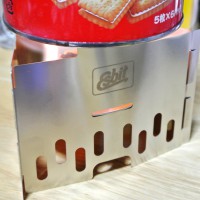アルコールバーナー(トランギアなど)を持っている人は、エスビットの折りたたみコンロよりも、組み立て式の風防兼ゴトクの方が、固形燃料およびアルコールバーナーのゴトクとしての両方で使用できるので、こちらの方が良いかもしれない。