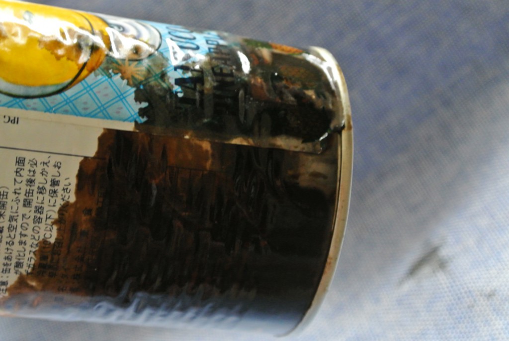 とはいえ、殺菌が不十分であったり、密封状態が悪かったり、容器の破損などで外気の侵入があると雑菌が繁殖し、腐敗に繋がる場合があります。このような安全性に問題がある状態になると、缶詰であれば缶が膨らんで、場合により破裂する。内容物が染み出してくるなど外観が正常でないことが判別できます。特に、缶切りを使用しないで開封できるプルトップ缶は破裂する場合が多いです。