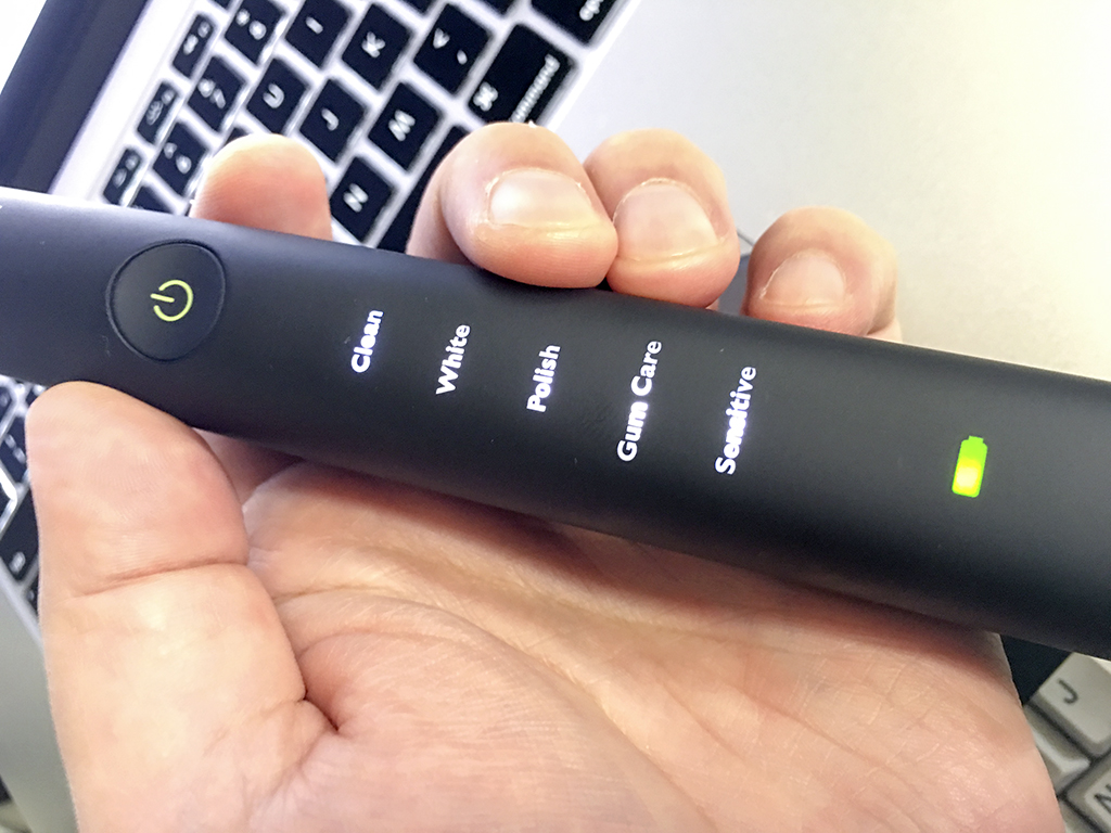 基本はCleanモードでブラッシングしますが、歯垢を落としたいときは Gum Care、ホワイトニングをしたい場合にはWhiteなど用途に応じて選べます。自分の使用状況では、CleanとGum Careを1度の歯磨きの中で使い分けていますが、磨き終わった後は、歯医者でクリーニングしてもらった後のような感じで、舌触りがツルツルになります。