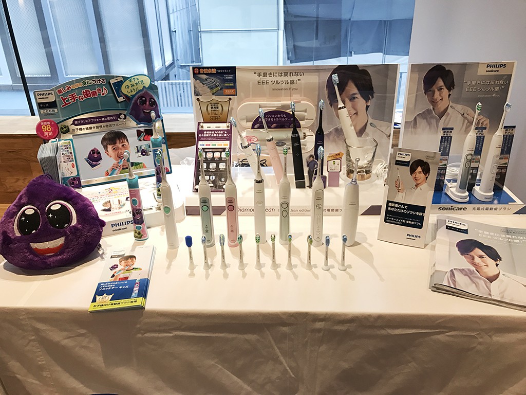 会場では、診断を待つ間に、歯磨きの指導や電動歯ブラシのデモなどが行われており、そちらで紹介されていたのがフィリップスの電動歯ブラシ「ソニッケアーシリーズ」でした。