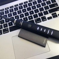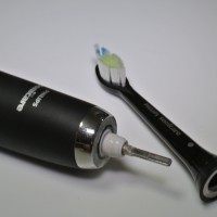 ポイントは、歯ブラシの挙動(動作モード)とUSBで充電できるところでした。充電台と専用グラスが付属していて、非接触で充電できることと、歯垢落としやホワイトニングなど歯みがきの目的に応じてヘッドが用意されていることなどは良いポイントだと思いました。反面、残念なのは充電もできるトラベルケースの仕様で、同じく非接触で充電できるのは良いのですが、充電用のUSBがmini USB端子で現在主流のmicro USBや次世代規格のUSB Type-Cだったりするとなお良かったように思います。また、交換ブラシは標準タイプのみ黒が用意されていますが、その他各種ブラシの色が白のみで本体色と合わないのは、ちょっと残念でした。