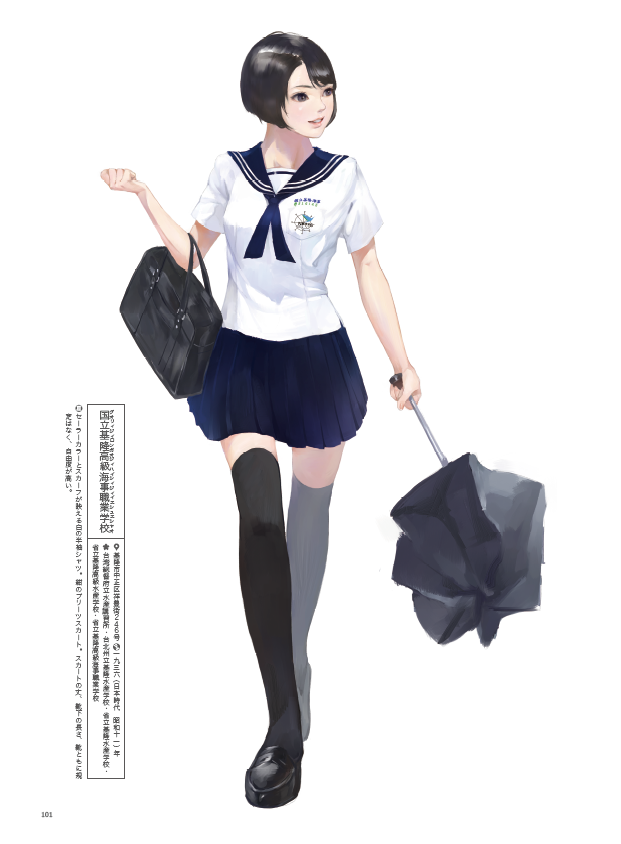イラストはスカートのヒダの数や、校章の刺繍まで忠実に描かれ、 女子高生たちのいきいきとした表情が作品に華を添えています。作品にはそれぞれの制服や校則の説明、季節による着こなしの違いなどの解説が付きます。