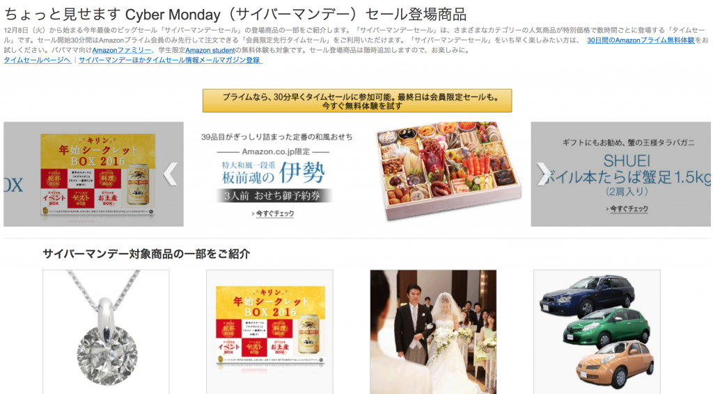 Amazon.co.jp 『Winter Holiday 2015』 第 4 弾「本気のビッグセール!サイバーマンデーウィーク