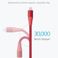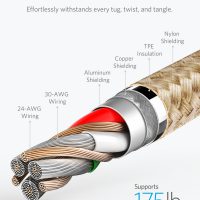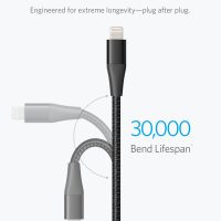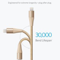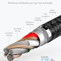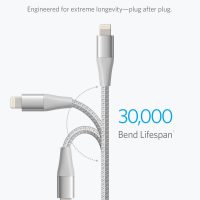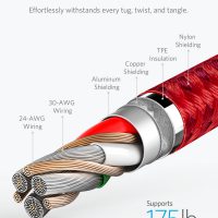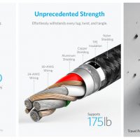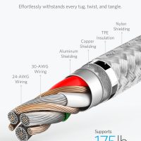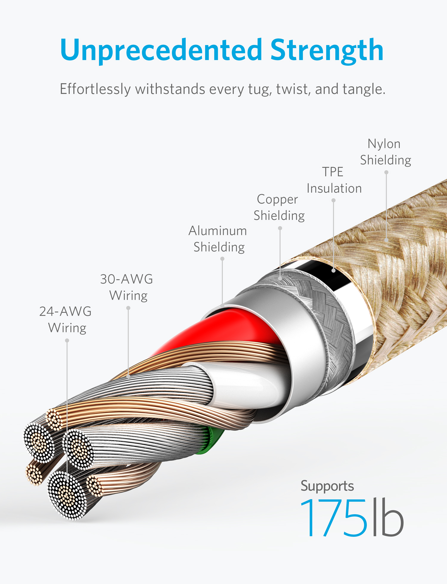 - – 超高耐久:一般的なケーブルの 30 倍以上の耐久性をもち、30000 回以上の厳しい折り曲げテストもクリア。 約 80kg の力で引っ張っても耐えられる、今までで最も耐久性の高いケーブルのひとつです。