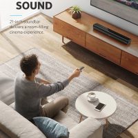 光ケーブルまたは3.5 mm-RCAステレオオーディオケーブルで、テレビに接続しお気に入りの番組や映画、ビデオゲームなどをお楽しみいただけます。また、Bluetoothを使用することでお手持ちのモバイル機器から音楽やポッドキャストなどのコンテンツを再生できます。