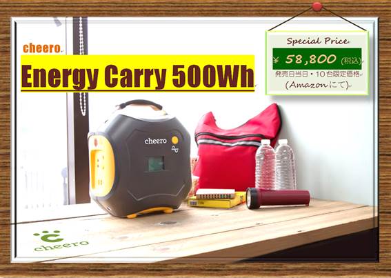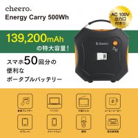 cheero、AC/DC/USB出力可能、LEDライト付き超大容量バッテリー「cheero Energy Carry 500Wh」を発売
