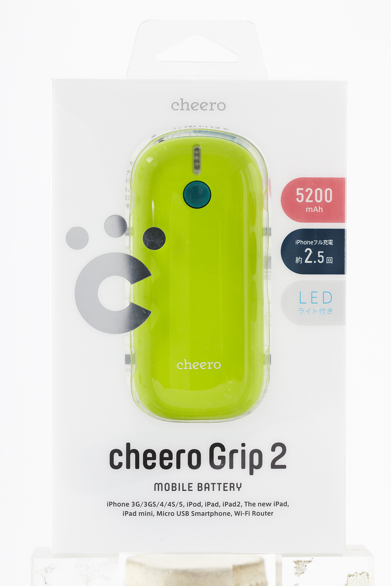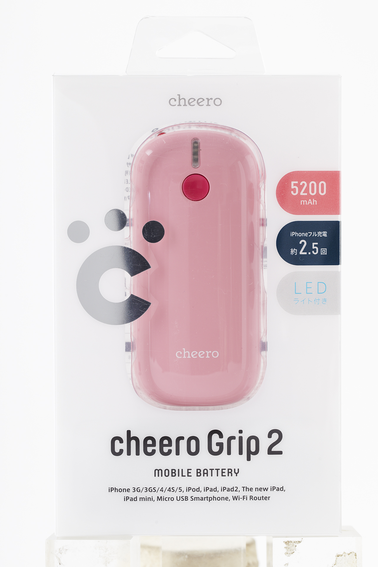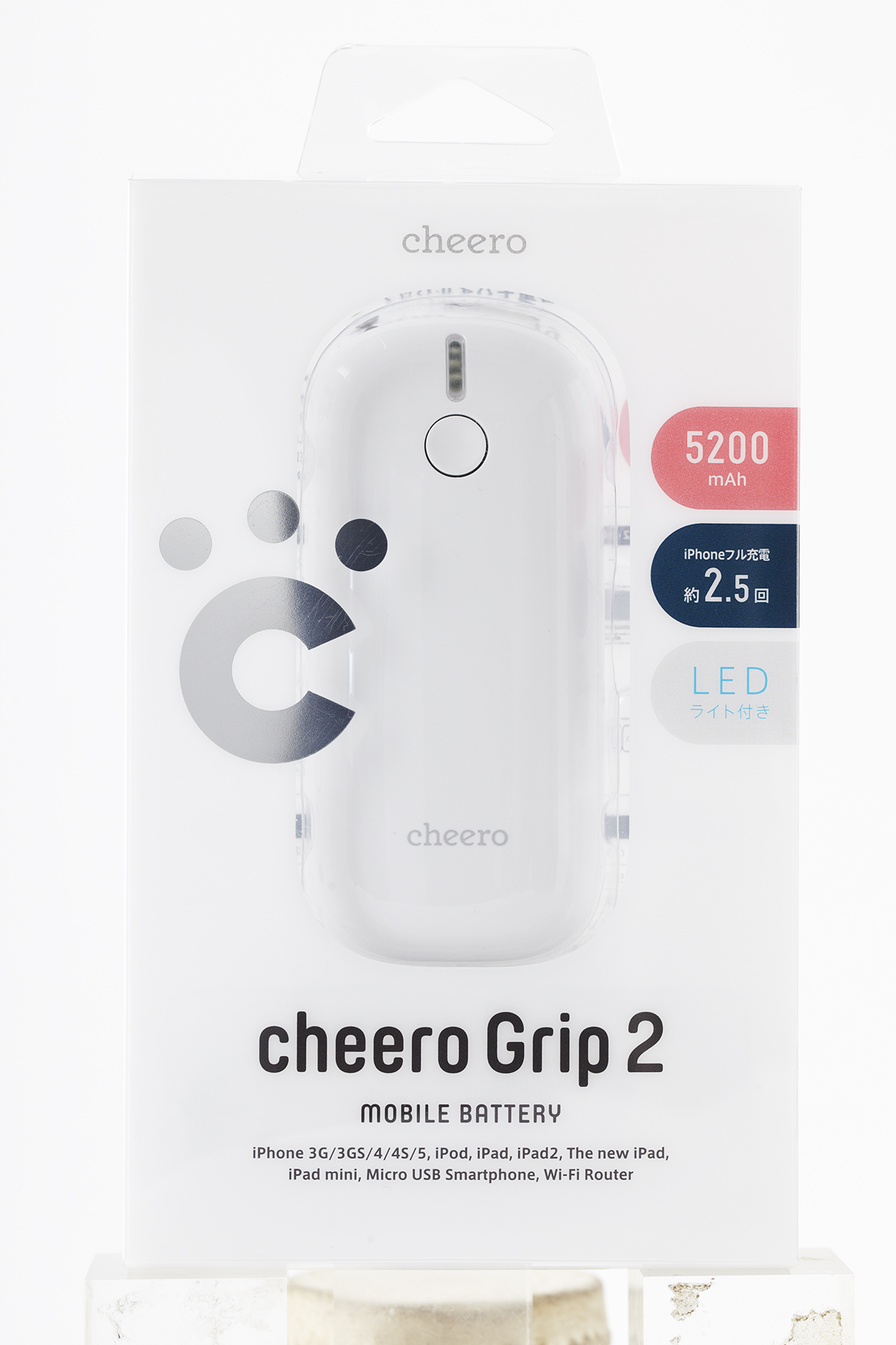 cheero、5,200mAhの容量のLEDライト付モバイルバッテリー「cheero Grip2 5200mAh