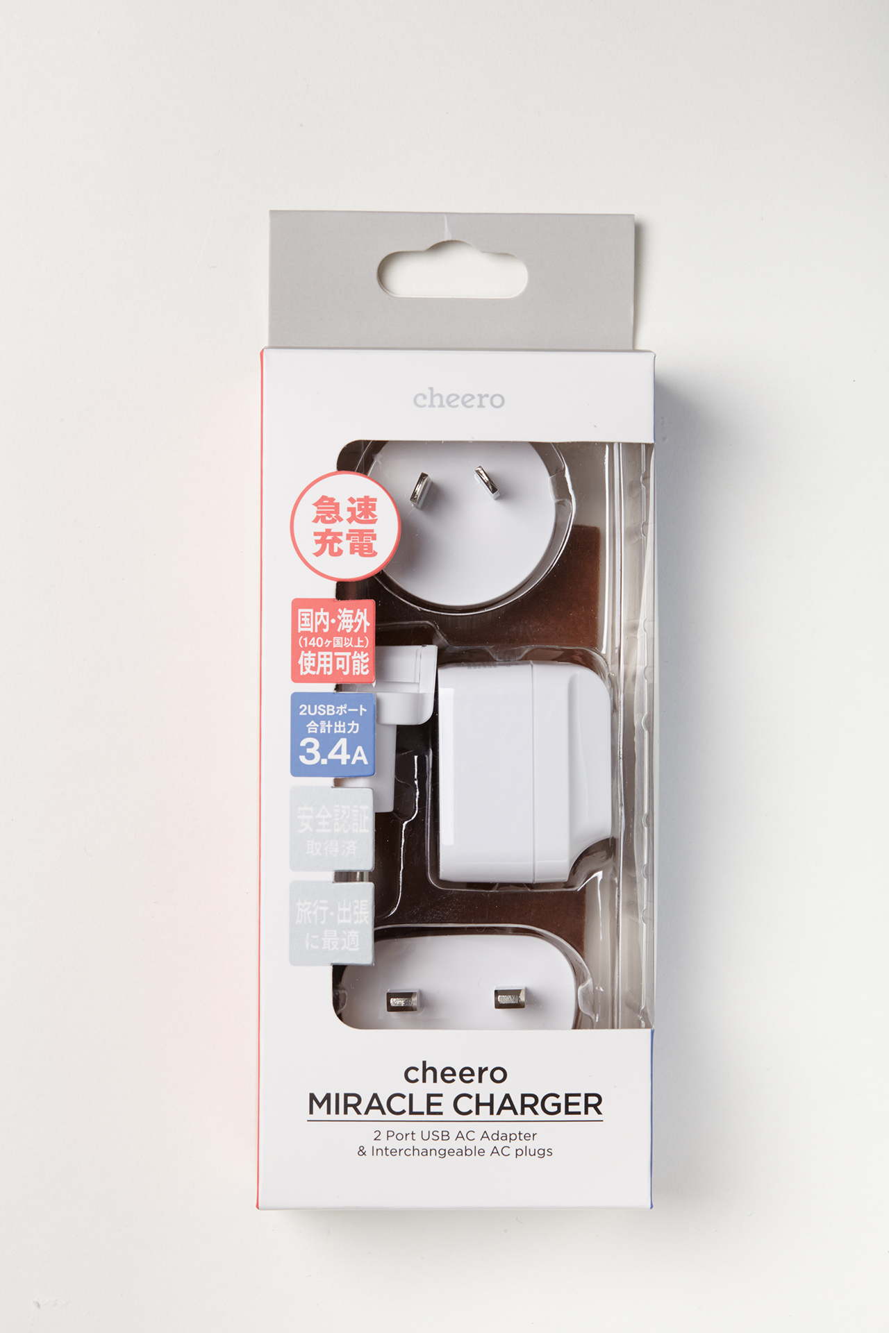 cheero、世界中への旅行、出張に最適な、交換式プラグによって世界140カ国以上に対応する USB-AC アダプタ「cheero Miracle Charger