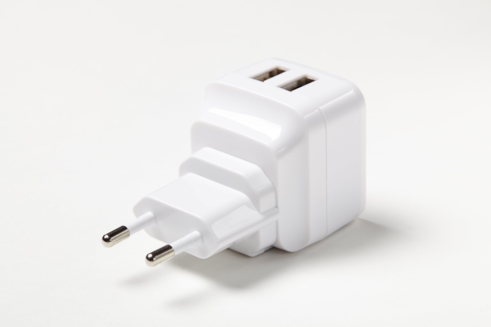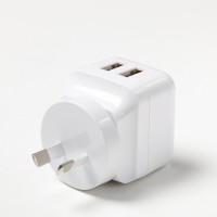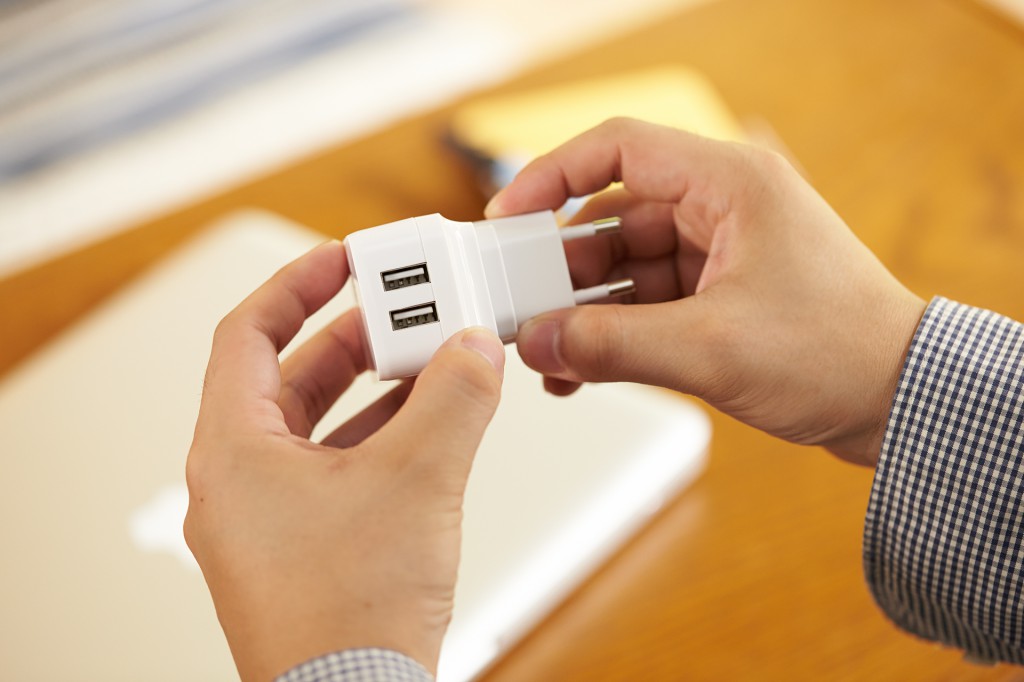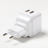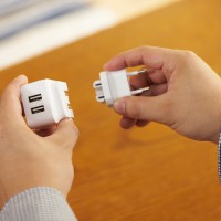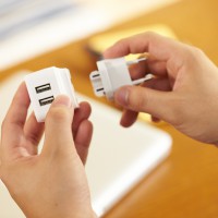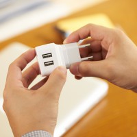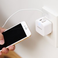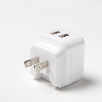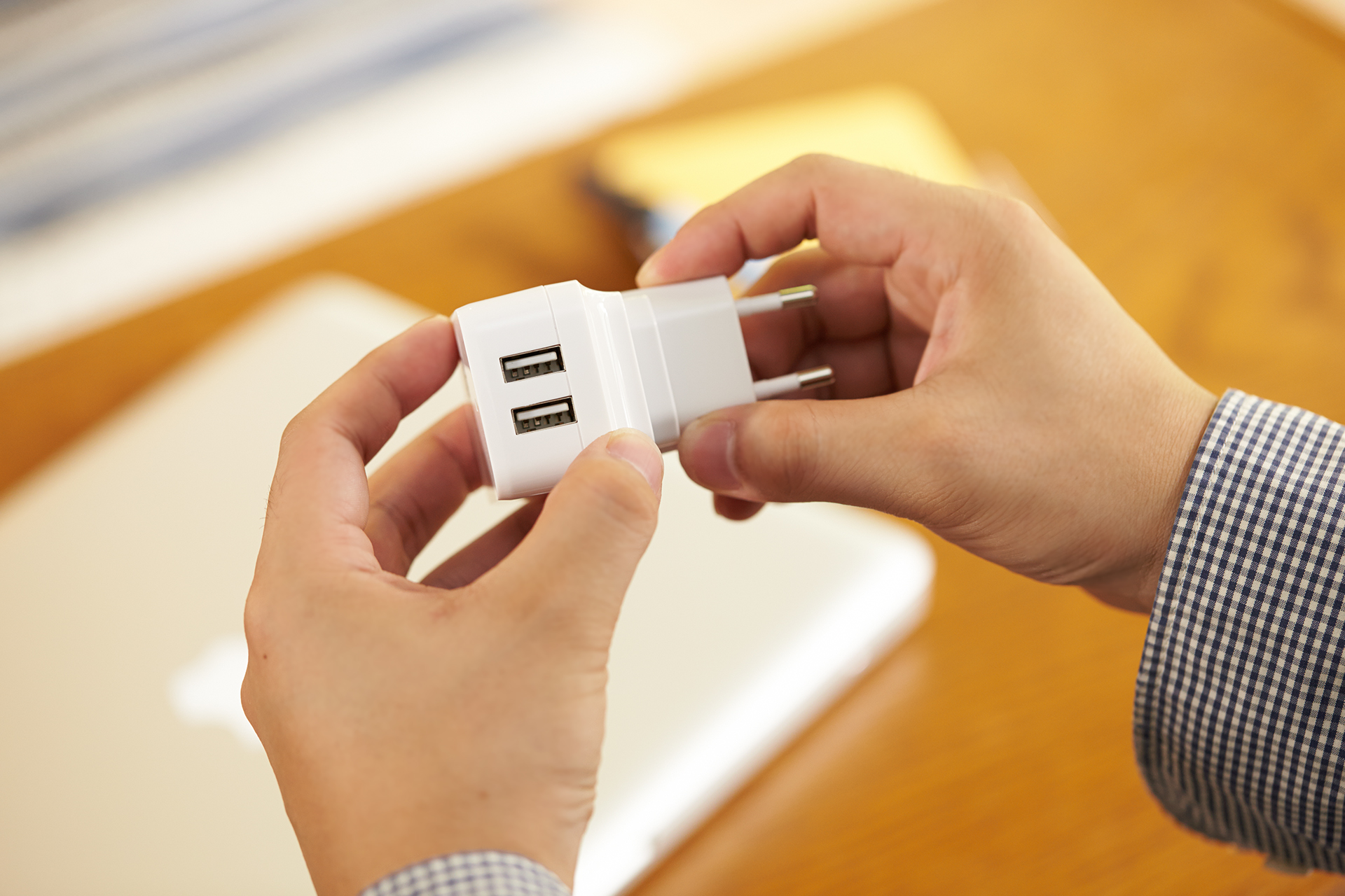 2つの出力ポートを搭載した USB – AC アダプタです。3.4A の合計出力でタブレット端末とスマートフォンを2台同時に急速充電することできます。